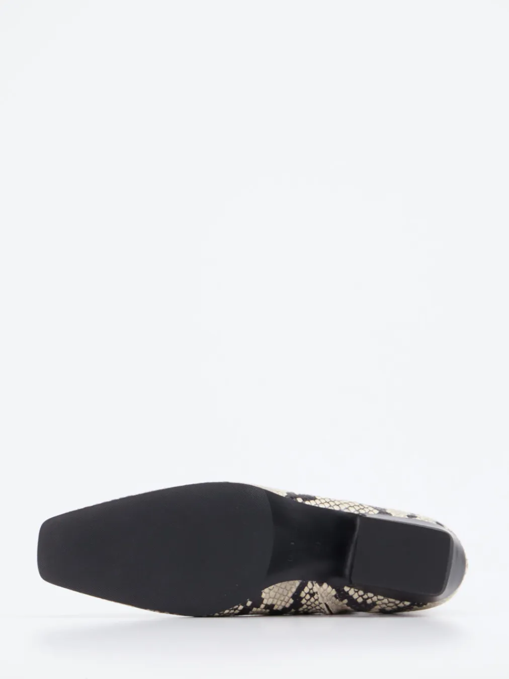 Statement-Stiefelette mit Western-Vibes.Die Damen-Stiefelette von Konstantin Starke kombiniert extravagantes Design mit klarer Silhouette. Ideal für trendbewusste City-Tage oder abendliche Auftritte im urbanen Umfeld: Das geprägte Leder mit glänzender Schlangenoptik in Beige-Schwarz sorgt für ausdrucksstarke Akzente. Die spitz zulaufende Form, ein silberfarbener Innenreißverschluss und ein 3 cm hoher Blockabsatz betonen den filigranen Vintage-Charakter. Eine profilierte Gummisohle bietet stabilen Halt. Eyecatcher mit Animal-Attitüde – perfekt zu Skinny Jeans oder Oversize-Jacke. Hochwertige Verarbeitung für stilvolle Looks mit modischem Anspruch.