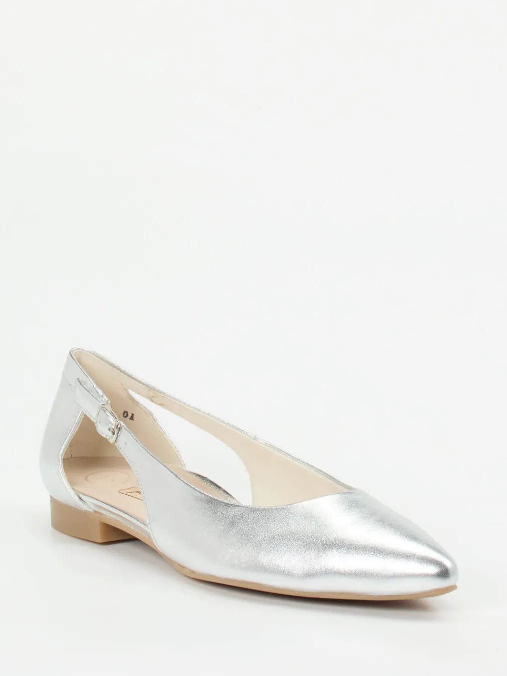 Dieser spitz zulaufende Ballerina überzeugt durch sein glänzendes Kalbleder-Finish und ein anpassbares Riemchendesign. Ideal für moderne Looks mit dezentem Glamour.
