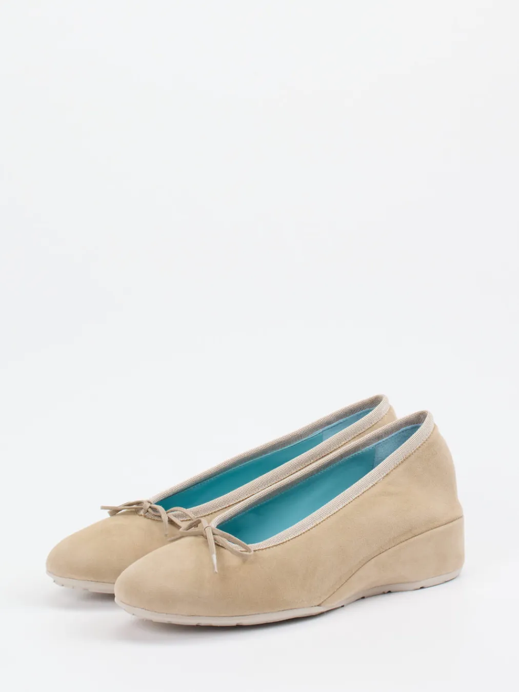 Schlichte Eleganz mit feinem Komfort.Thierry Rabotin präsentiert mit diesen Ballerinas in Beige ein Damenmodell, das Komfort und Stil vereint. Ob im Büro oder im urbanen Alltag – der Keilabsatz sorgt für eine angenehme Laufhöhe, während das samtig matte Veloursleder hochwertig wirkt und sich dem Fuß geschmeidig anpasst. Ein elastischer Textilrandabschluss und eine verspielte Schleife setzen dezente Akzente. Innen bietet türkisfarbenes Lammnappa ein überraschendes Farbdetail und exzellenten Tragekomfort. Die strukturierte Gummisohle mit Markenprägung verhält sich rutschhemmend. Minimalistische Retro-Elemente unterstreichen den „Quiet Luxury“-Ansatz. Kombiniert mit hellen Hosen entsteht ein frühlingshafter Look. Ein stilistisch vielseitiger Klassiker – feminin, leicht und hochwertig verarbeitet.