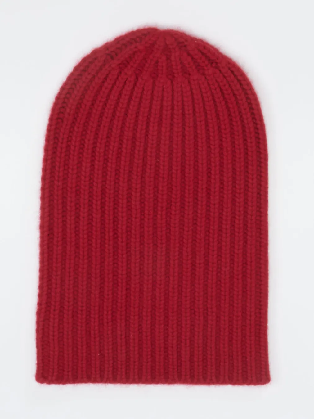 Flauschiger Kaschmir-Strick in intensiver Rotnuance trifft auf klassische Beanie-Silhouette – stilvoller Komfort für kühle Tage.