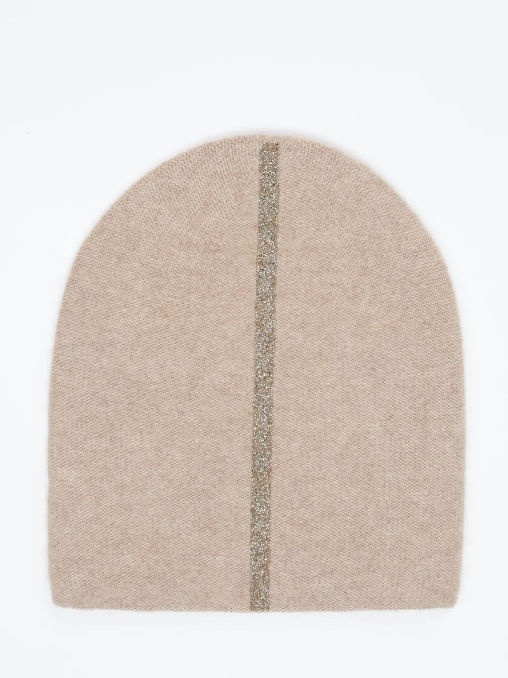 Die feine Kaschmirqualität und ein goldschimmernder Zierstreifen verleihen dieser Beanie von Hurray eine exklusive Note – perfekt für zurückhaltend luxuriöse Winterlooks.