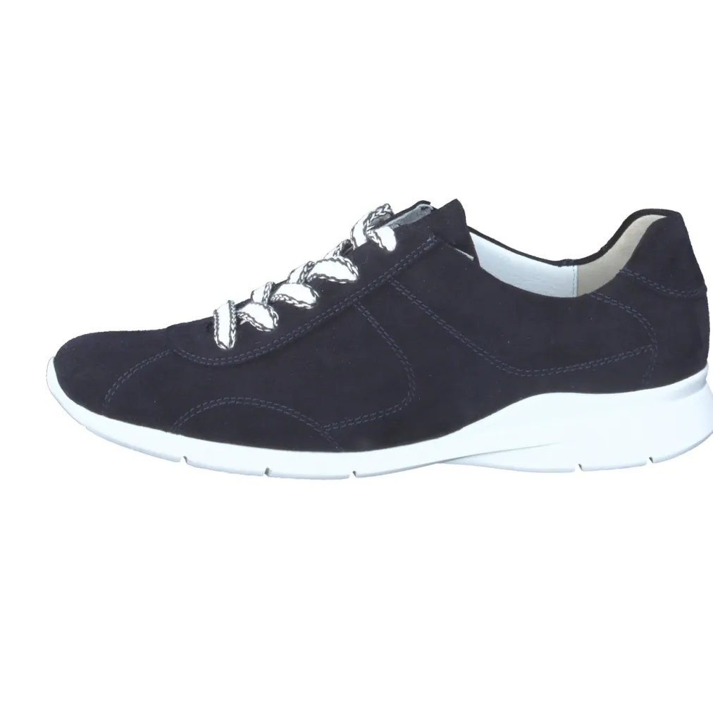 Komfort trifft ruhige Eleganz.Der Damen-Bequem-Sneaker von Semler vereint zurückhaltendes Design mit gehobenem Tragekomfort. Für entspannte Tage, an denen Bequemlichkeit im Fokus steht: Das weiche, dunkelblaue Veloursleder mit matter Oberfläche zeigt sich dank kontrastierender Schnürsenkel und Ton-in-Ton-Nähten stilvoll und dezent. Die klassisch abgerundete Silhouette wird durch einen gepolsterten Schaftrand und die profilierte weiße PU-Sohle mit Luftpolsterung funktional ergänzt. Der Halbschuh eignet sich ideal für ruhige Freizeitaktivitäten oder den Alltag. Besonders gut kombinierbar mit reduzierter Casualwear in gedeckten Tönen. Semler verbindet detailbewusste Verarbeitung mit entspanntem Chic für komfortliebende Anspruchsträgerinnen.