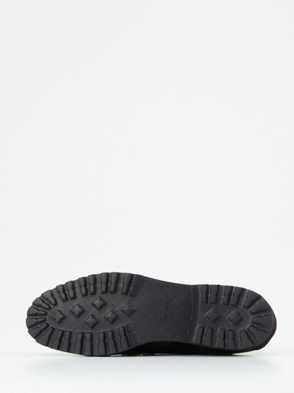Heritage trifft Materialkontrast.Die Marke Sioux bringt mit diesem Damen-Brogue einen stilvollen Schnürschuh für Büro und Alltag. Der Schuh überzeugt durch seine hochwertige Zweimaterial-Konstruktion aus schwarzem, glänzendem Lackleder und samtig-mattem Veloursleder. Klassische Brogue-Lochmuster und eine flache Silhouette mit abgerundeter Kappe unterstreichen die elegante Formsprache. Die profilierte Porosohle mit anthrazitfarbenem Rahmen sorgt für sicheren Tritt. Innen bietet ein weich gepolstertes Wechselfußbett Laufkomfort und Platz für Einlagen. Der Look passt zeitlos zu minimalistischen Business-Outfits oder urbanen Herbstkombinationen. Ein vielseitiges Statement-Piece mit markentypischer Passformkompetenz und Stilverständnis.