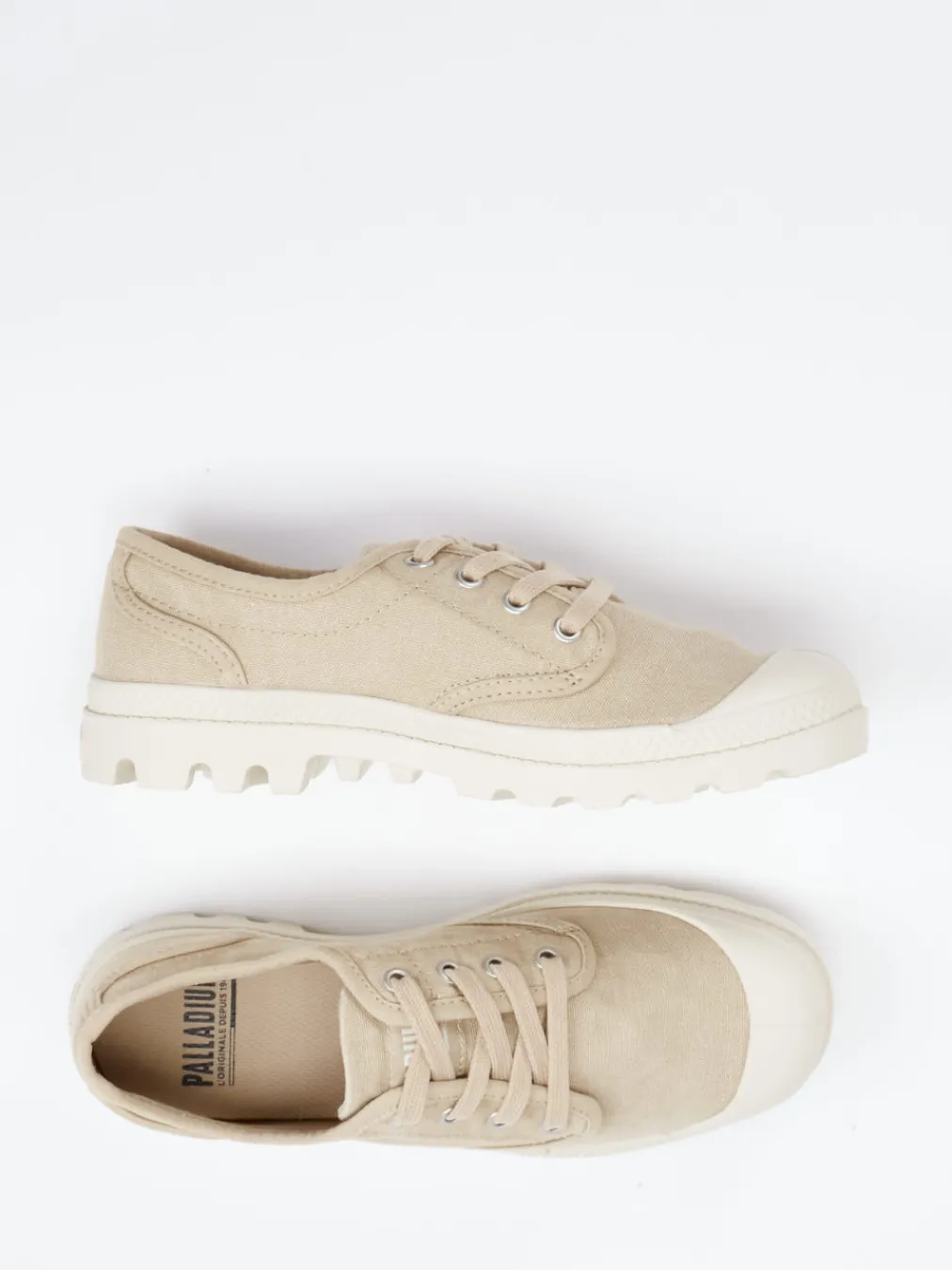 Für urbane Wege gemacht.Palladium präsentiert mit diesem Schnürschuh einen unisex Canvas-Sneaker mit betont lässiger Utility-Ästhetik. Die robuste Textil-Oberfläche mit matter Optik und ton-in-ton gehaltenen Nähten sorgt für Understatement bei maximaler Alltagstauglichkeit. In einem neutralen Beigeton gehalten, lässt sich das klar geschnittene Modell vielseitig kombinieren. Detailstarke Elemente wie Metallösen, eine profilierte Gummisohle mit Grip sowie dezentes Branding an Ferse und Seite runden das Gesamtbild ab. Ein stilvoller Vertreter des Gorpcore-Trends mit Funktion für Stadt und Freizeit. Besonders gut wirkt er zu Naturtönen, Cargo oder Light Denim. Palladium verbindet hier Zweckdesign mit modischer Vielseitigkeit auf charakteristische Weise.