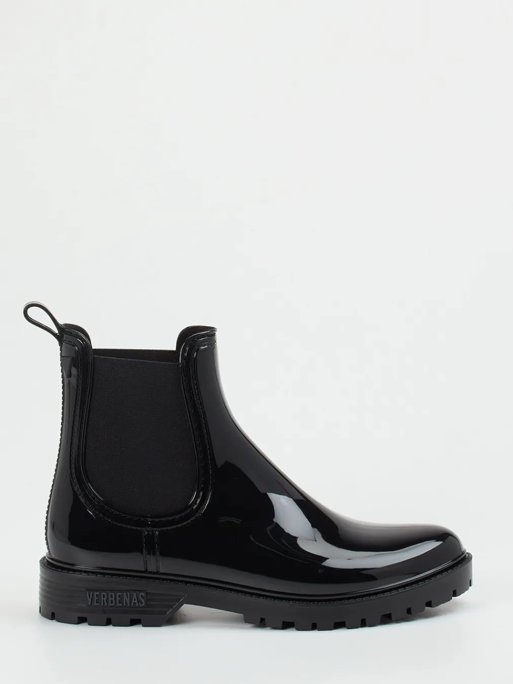 Schwarzer Glanz für graue Tage.Verbenas interpretiert den Chelsea Boot als wetterfesten Begleiter für den Alltag. Ideal für urbane Regenspaziergänge oder spontane Outdoor-Touren: Diese schwarzen Chelsea Boots bestehen aus wasserresistentem Synthetik mit glänzender Oberfläche und sind mit elastischen Ton-in-Ton-Einsätzen sowie einer robusten Profilsohle ausgestattet. Die schlanke, knöchelhohe Form sowie die dezente Markenprägung sorgen für einen klaren, minimalistischen Look. Das textile Innenfutter und die Zuglasche am Schaft bieten praktischen Komfort. Trendig im „Rainwear Revival“ positioniert, fügen sich diese Boots nahtlos in moderne Streetwear-Looks ein. Verbenas vereint wetterfeste Funktionalität mit urbanem Stilverständnis.