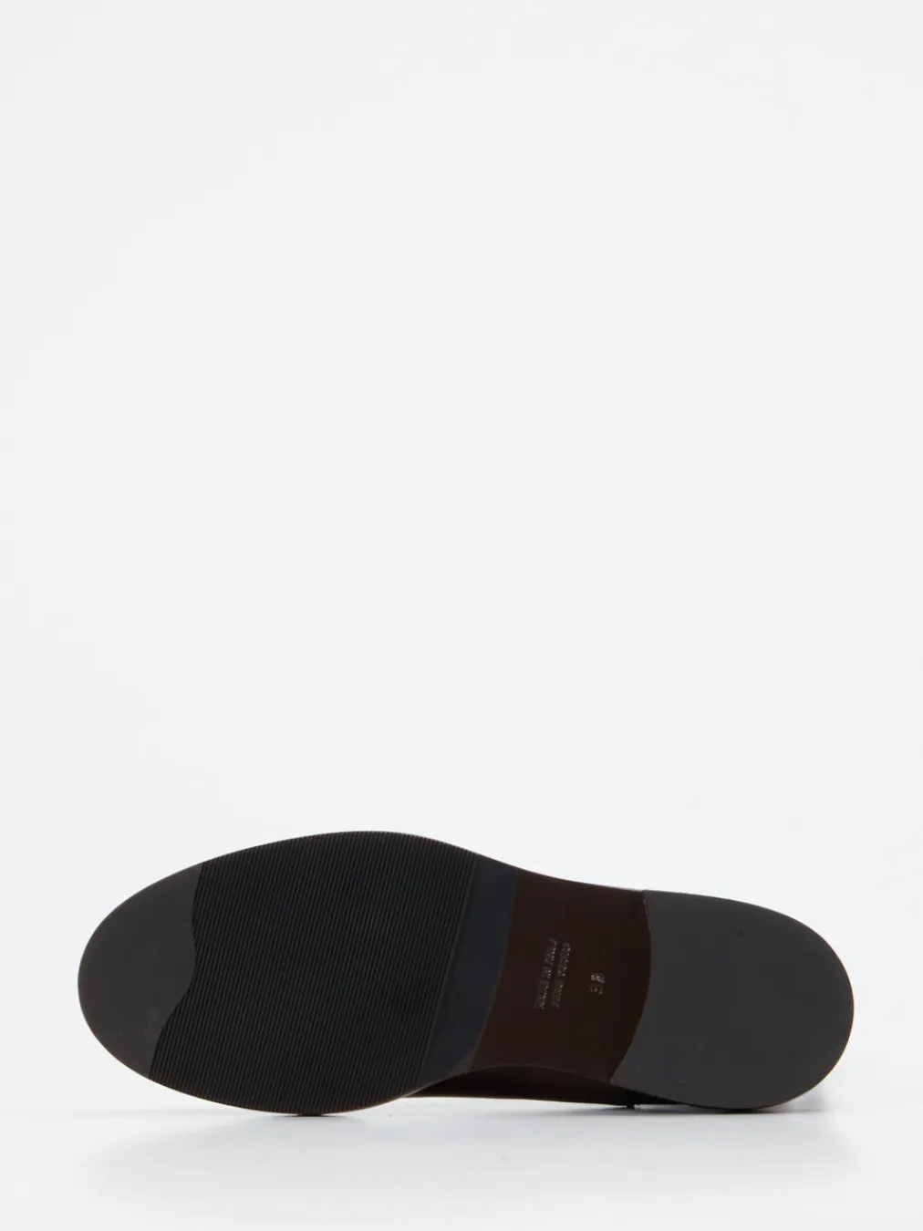 Perfekt für urbane Herbsttage oder entspannte Bürolooks verbinden diese boots hochwertige Verarbeitung mit puristischem Charme. Dunkelbraunes, glänzendes Kalbleder und tonale Elastikeinsätze verschmelzen zu einer eleganten, knöchelhohen Silhouette. Zuglaschen erleichtern den Einstieg, die Sohle vereint lederne Optik mit griffiger Gummierung. Der dezente Absatz rundet das Gesamtbild harmonisch ab. Inspiriert vom „Quiet Luxury“-Trend überzeugt dieser Stil bei minimalistischen Looks oder unter einem Kaschmirmantel.