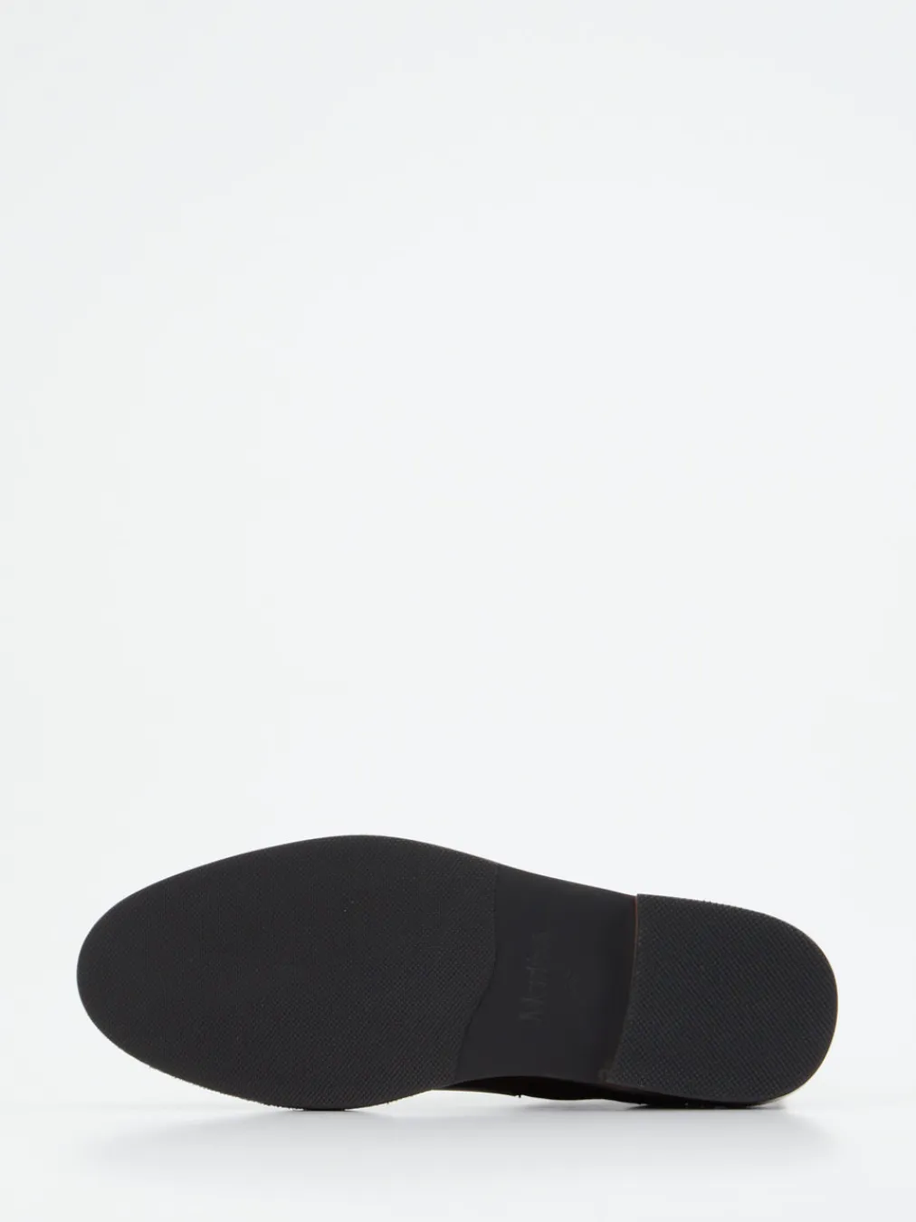 Handwerk trifft Quiet Luxury.Die Marke Maripé präsentiert diese klassische Damen-Stiefelette im Chelsea-Stil. Ideal für Business und Alltag, überzeugt das Modell mit edlem, genarbtem Kalbleder in sattem Dunkelbraun. Typisch sind die seitlichen Elastikeinsätze und die praktische Zuglasche, ergänzt durch eine dezente Ziernaht an der Ferse. Die Gummisohle mit leichtem Profil und der Absatz in Holzoptik sorgen für Alltagstauglichkeit und sicheren Stand. Der klassische, knöchelhohe Schnitt reflektiert minimalistische Eleganz mit Heritage-Anklang. Kombiniert mit dunkler Denim oder Kaschmir wirkt der Look besonders stilvoll. Maripé steht für zeitlose Designs mit italienischer Handwerkskunst und erstklassigem Tragekomfort.