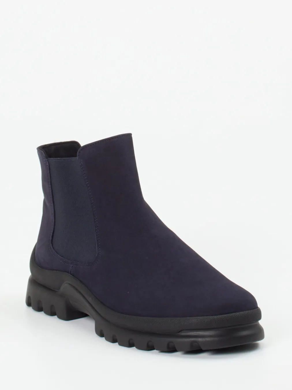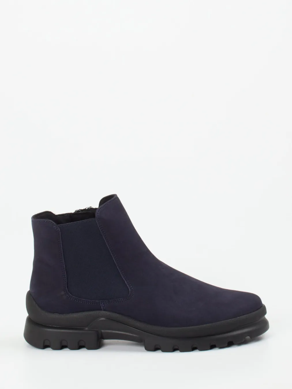 Stilsicher durch kühle Tage.Die Stiefelette von Semler vereint Komfort mit urbanem Minimalismus. Für nasses, kühles Wetter und lange Spaziergänge ist dieses Modell eine ideale Wahl. Gefertigt aus samtig angeschliffenem Nubukleder in Dunkelblau und mit mattem Finish, präsentieren sich die Chelsea Boots in einem klaren, klassischen Schnitt mit seitlichem Elastikeinsatz und praktischem Reißverschluss. Innen sorgt eine Mikrofaserfütterung mit Wechselfußbett für angenehmen Tragekomfort, während die luftgepolsterte PU-Sohle mit Profil guten Halt bietet. Modisch eingebettet in aktuelle Trends wie Quiet Utility und Lug Sole. Robuster Tragekomfort in funktionalem Design – typisch Semler.