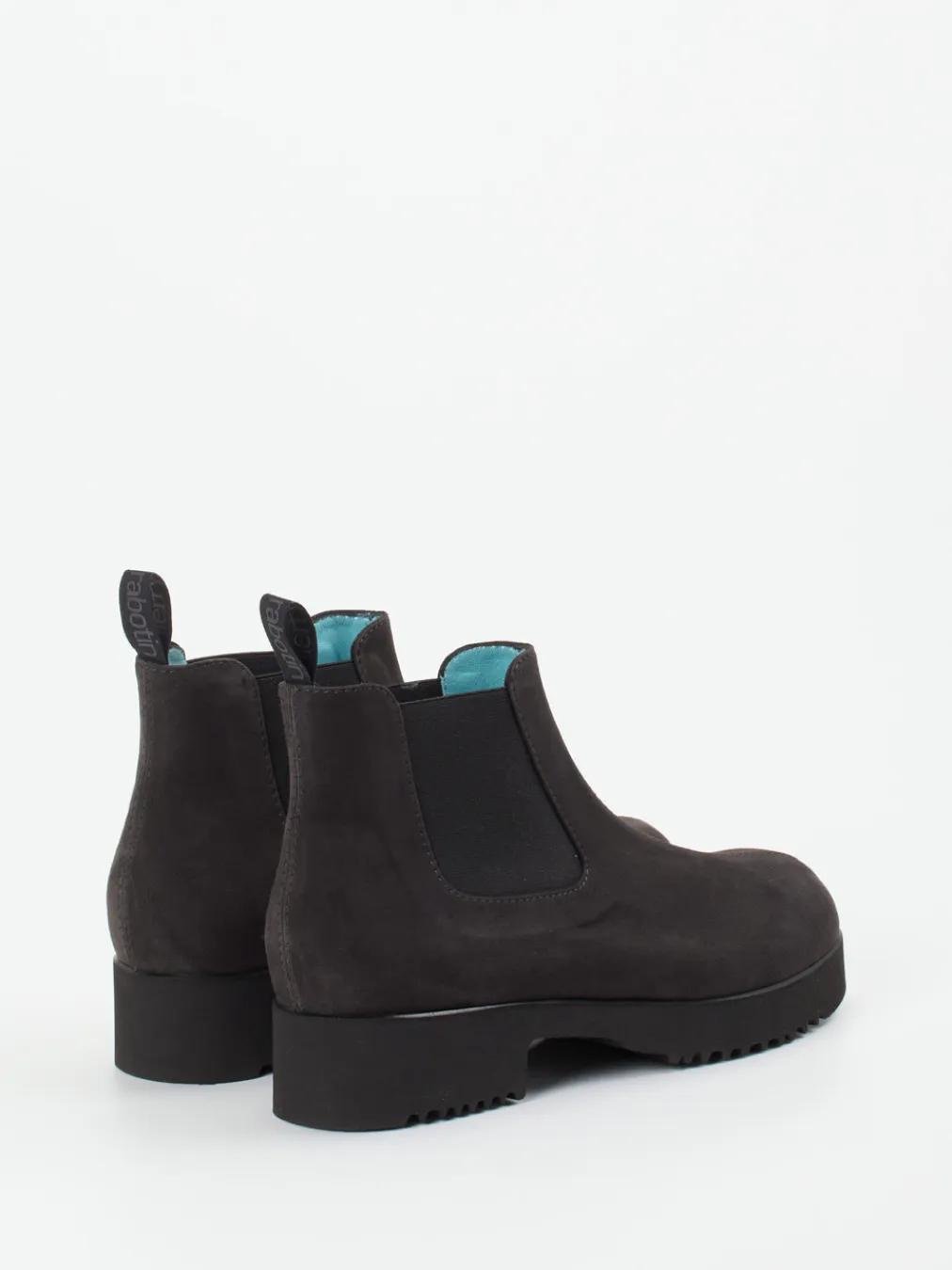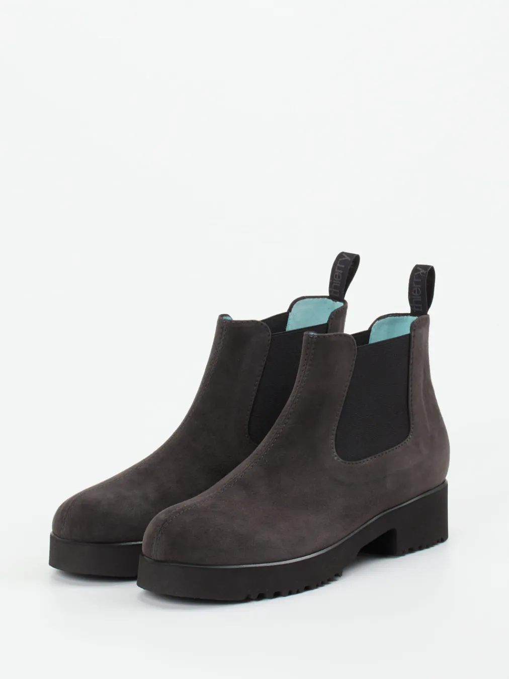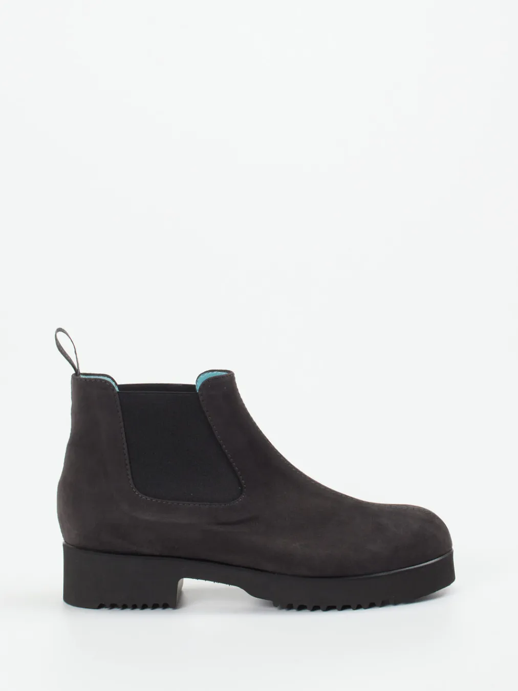 Urbaner Stil neu gedacht.Thierry Rabotin präsentiert mit dieser Stiefelette eine elegante Chelsea-Variante. Der alltagstaugliche Boot aus Veloursleder, samtig angeschliffen und in charakteristischem Anthrazit gehalten, verbindet Minimalismus mit hohem Komfort. Elastikeinsätze und die Zuglasche mit Marken-Schriftzug erleichtern den Einstieg, während das Innenfutter aus zartem, hellblauen Lammnappa einen überraschenden Akzent setzt. Die profilierte Plateau-Gummisohle sorgt für Stabilität im urbanen Umfeld und stützt den Streetwear-Appeal. Ideal kombinierbar zu Oversized-Mänteln oder strukturierten Taschen für einen cleanen Herbstlook. Verlässlicher Tragekomfort mit stilprägender Zurückhaltung – typisch Thierry Rabotin.