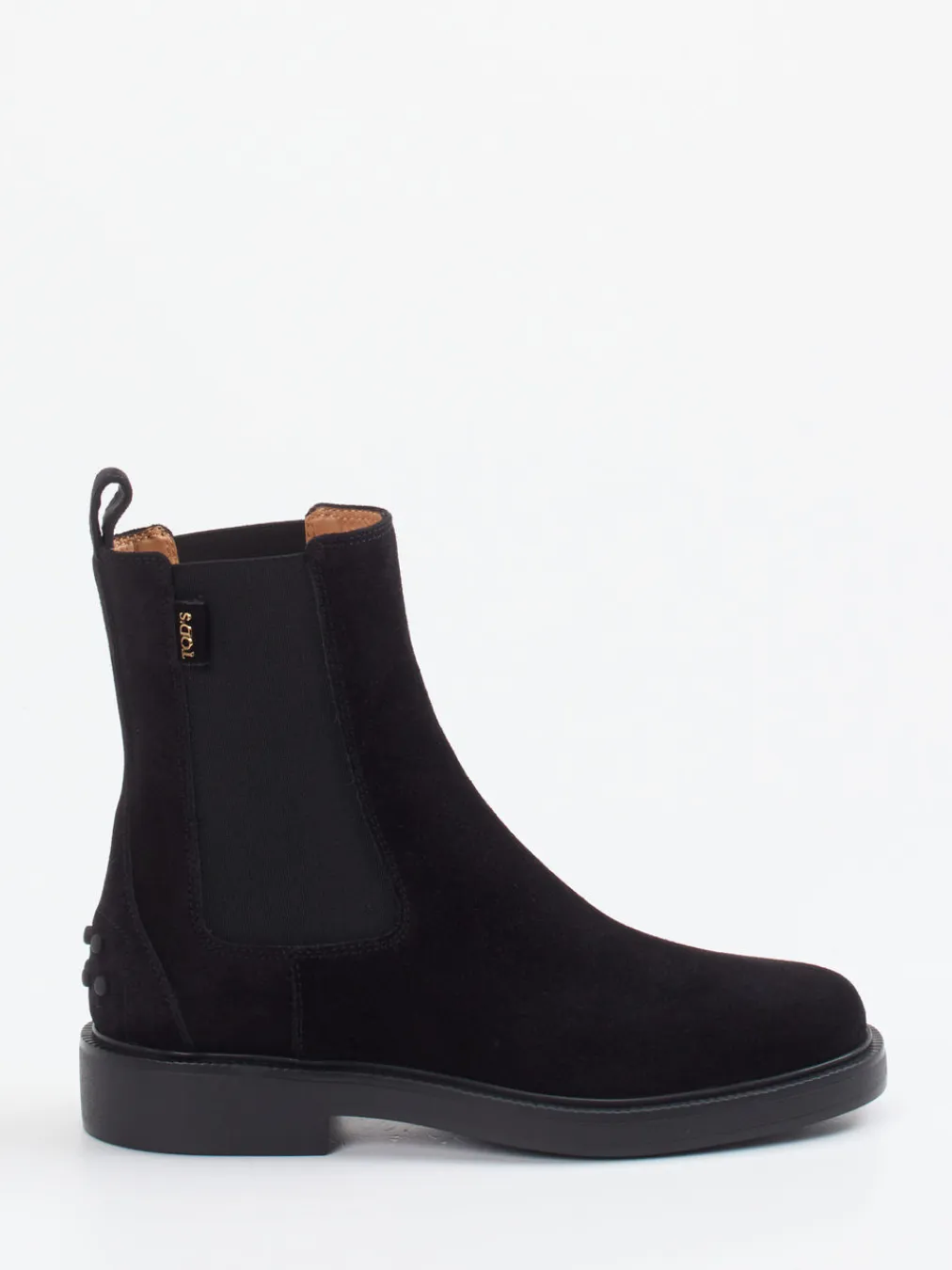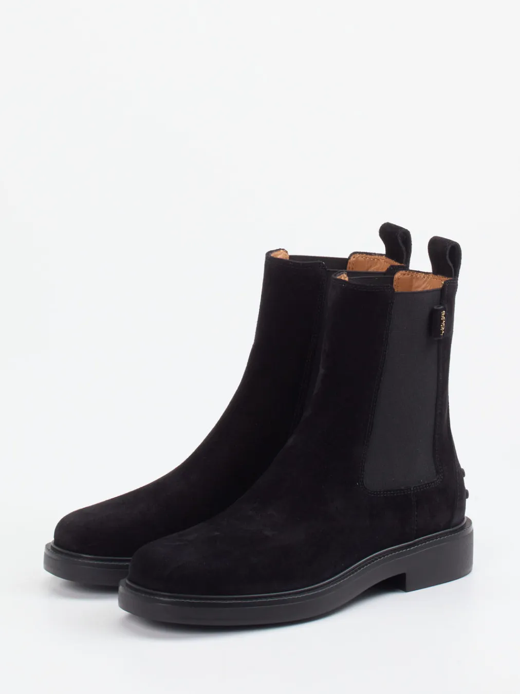 Reduktion in stilvoller Form.Tod’s interpretiert klassische Chelsea Boots mit fein geschliffenem Veloursleder in tiefem Schwarz neu. Ob beim Weg ins Büro oder beim Stadtbummel – diese schmal geschnittenen Stiefeletten überzeugen durch ihr mattes Finish, elastische Ton-in-Ton-Einsätze und eine komfortable Leichtzellsohle. Das weiche Kalblederfutter sorgt für ein angenehmes Tragegefühl, während die klare Linienführung den minimalistischen „Quiet Luxury“-Trend betont. Dezente Logo-Applikationen und die charakteristische Zuglasche runden das Design elegant ab. Besonders harmonisch wirken die Boots in Kombination mit einem Kaschmir-Mantel. Ein stilvolles Statement – mit unverkennbarer Tod’s-Präsenz.