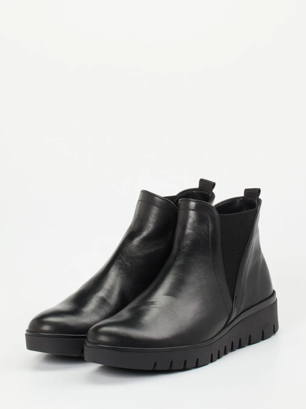 Ideal für den urbanen Alltag: Das hochwertig verarbeitete Kalbleder zeigt sich in klassischem Schwarz mit feinem Glanz und anschmiegsamer Haptik. Tonige Elastikeinsätze mit Struktur, ein verdeckter Reißverschluss sowie eine Zugschlaufe hinten unterstreichen den cleanen Look und erleichtern das Anziehen. Die profilierte Gummisohle bietet guten Grip auf wechselnden Untergründen – perfekt für Freizeit und Büro. Die fleecegefütterte Innenseite sorgt zusätzlich für Wärme an kühlen Tagen. Kombiniert mit Wollmantel und Ledertasche entsteht ein moderner Quiet-Luxury-Style.