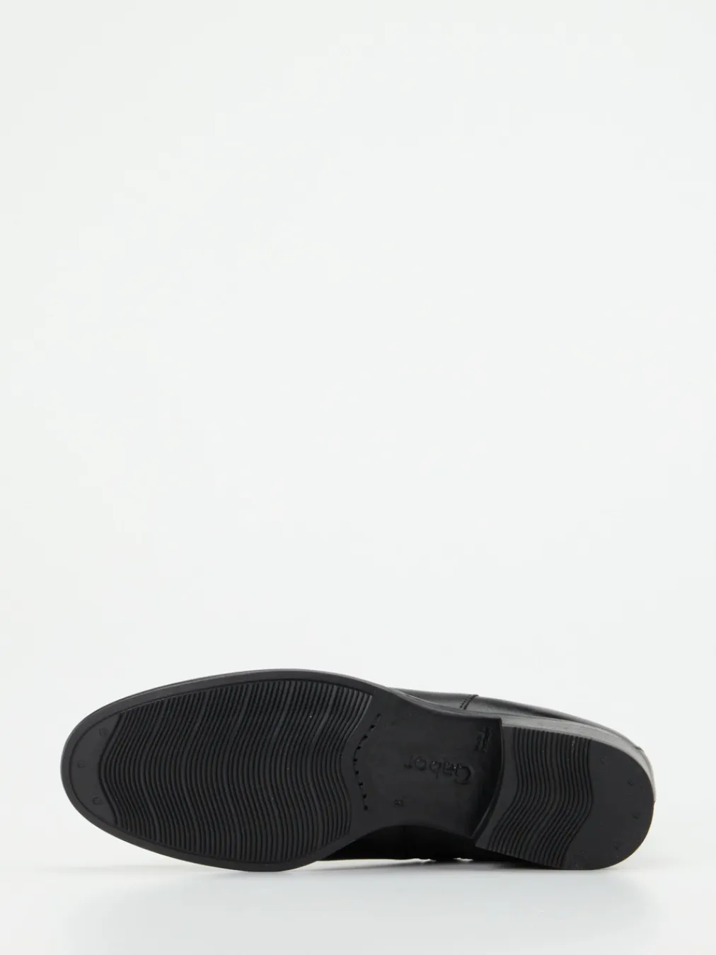 Eleganz trifft Alltagskomfort.Gabor interpretiert die Damen-Stiefelette im klassischen Chelsea-Stil neu. Für den stilvollen Auftritt im Business-Alltag oder beim Stadtspaziergang bietet das Modell aus hochwertigem, glänzendem Kalbleder perfekten Komfort. Die schwarze Silhouette mit dezenten Ton-in-Ton-Nähten wirkt clean und zeitlos. Seitliche Elastikeinsätze und eine dezente Zuglasche erleichtern den Einstieg; das weiche Mikrofaserfutter sorgt für angenehmes Tragen an kühleren Tagen. Die flach profilierte Gummisohle verbindet Eleganz mit Rutschfestigkeit. Ein Modell im Zeichen von Quiet Luxury und Modern Classics. Gabor steht hier für stilbewusste Funktionalität mit einem Hauch britischer Heritage.
