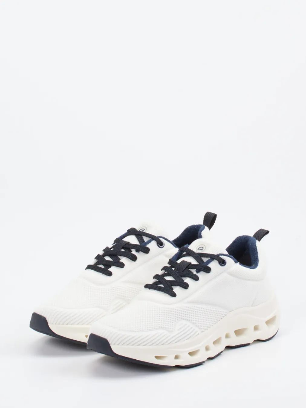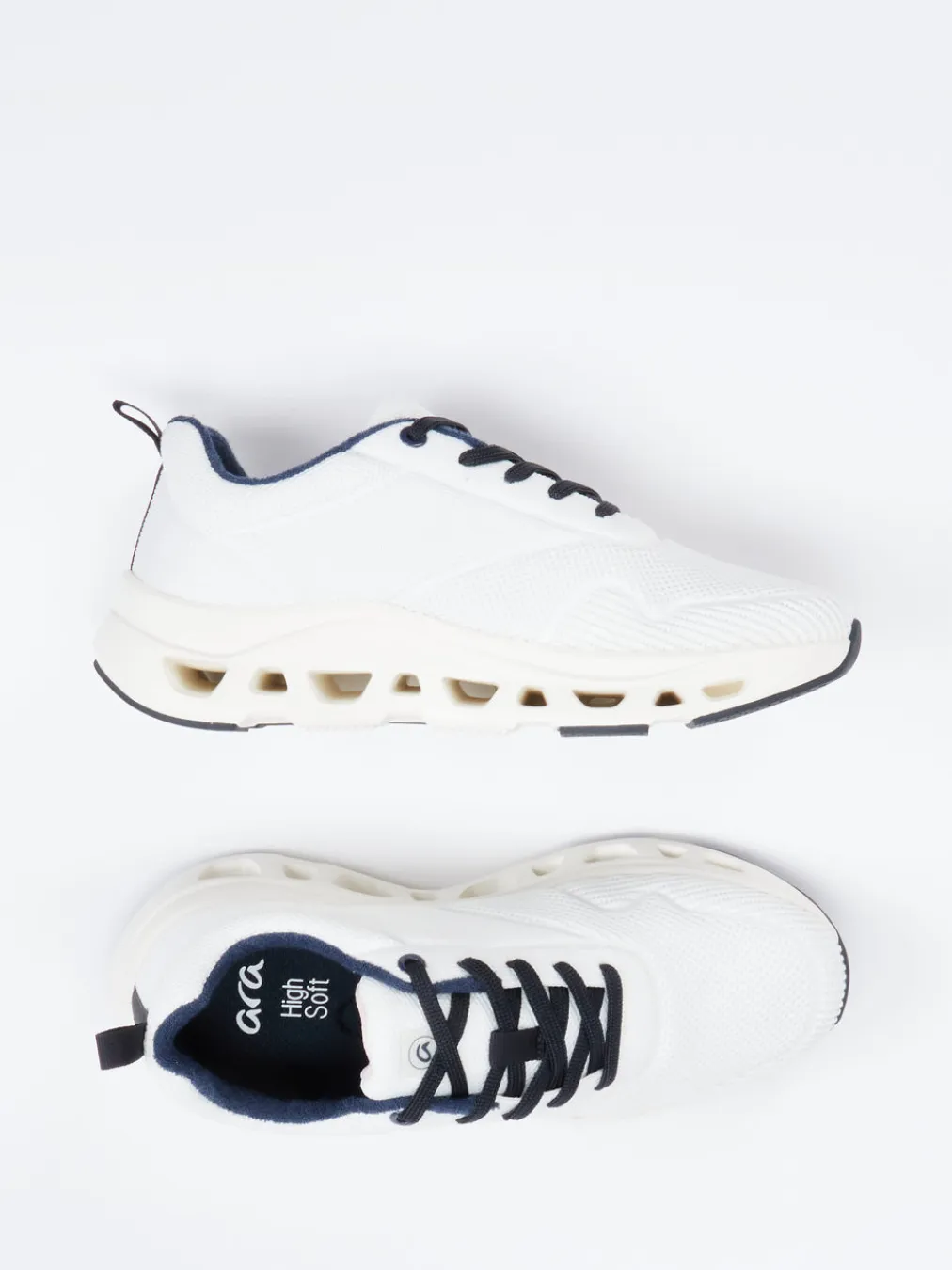 Komfort trifft auf stylisches Volumen.Die Marke Ara präsentiert diesen Damen-Sneaker in moderner Chunky-Optik. Ob beim Stadtbummel oder unterwegs zur Pilates-Stunde – der „Rio“ Sneaker kombiniert leichtes, strukturiertes Textil mit atmungsaktivem Frotteefutter und High-Soft-Innensohle für maximalen Laufkomfort. Farblich akzentuiert durch dunkelblaue Fersenlasche und Schnürsenkel, zeigt sich das sonst weiße Modell clean und vielseitig. Die gelochte PU-Sohle mit rutschhemmendem Profil setzt einen funktionalen Designakzent. Im Stil zwischen Minimalismus und Athleisure angesiedelt, wirkt der Schuh besonders modern. Perfekt für entspannte Looks mit maritimer Frische und bewährtem Ara-Komfort.