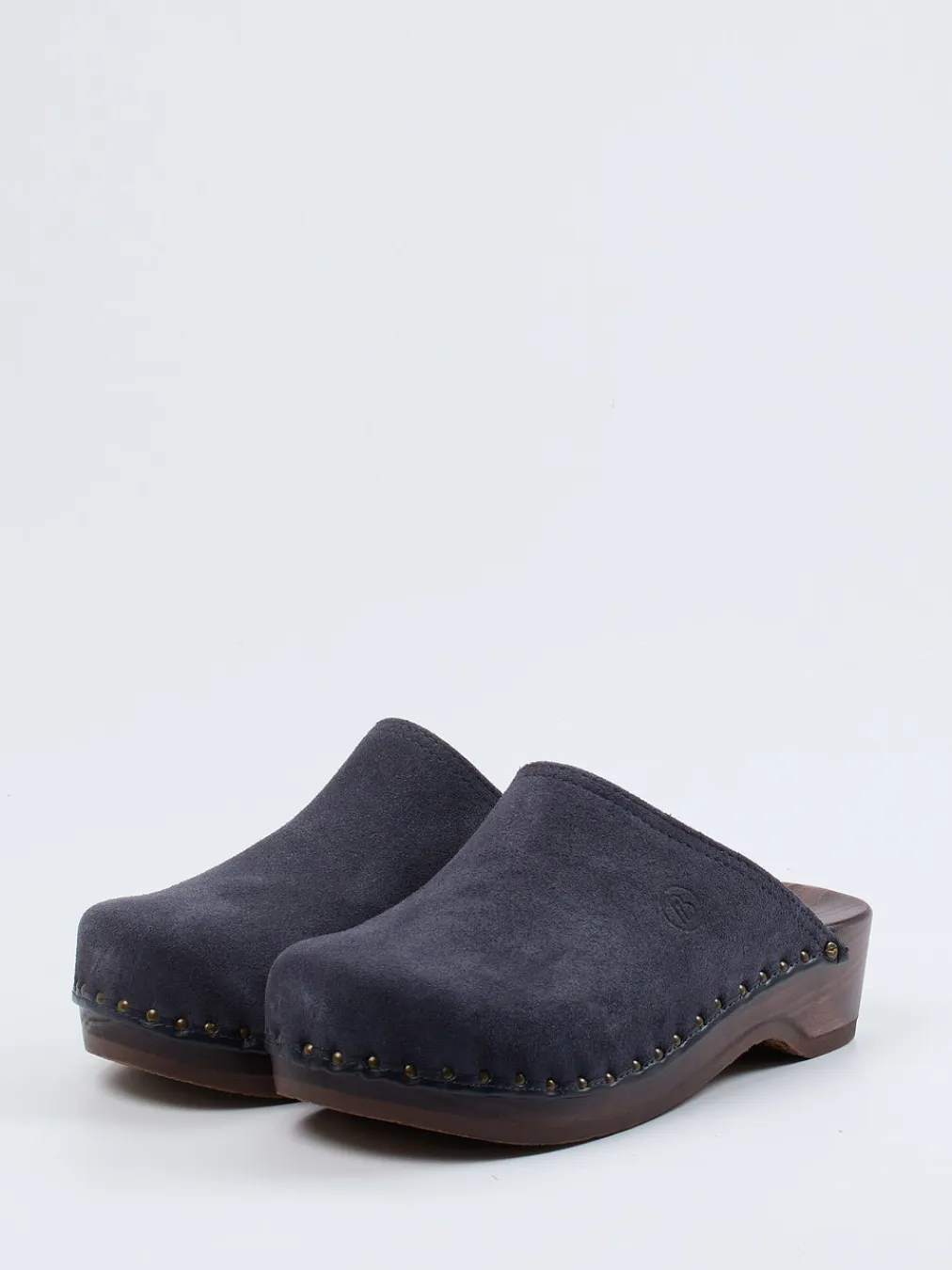 Diese Damen-Clogs kombinieren französisch angehauchtes Veloursleder mit ergonomisch geformtem Holz – ein funktional-stilvolles Zusammenspiel natürlicher Materialien.