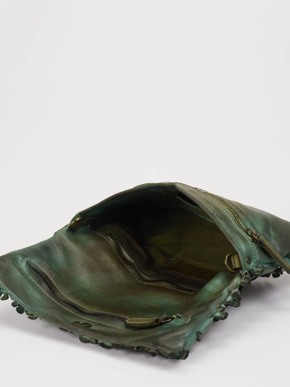 Ein Hauch Vintage für moderne Outfits. Die Marke Alchimia präsentiert mit dieser Clutch eine stilvolle Handtasche für entspannte Freizeitmomente. Gefertigt aus feinem Kalbleder und ergänzt durch eine matte Oberfläche, zeigt sich dieses Modell in harmonischen Olivgrüntönen mit floralen 3D-Applikationen. Die rechteckige Form, antikgoldene Details sowie der abnehmbare Schulterriemen unterstreichen den Vintage-inspirierten Charme. Praktische Features wie zwei Reißverschlussfächer und ein Magnetverschluss sorgen für Alltagstauglichkeit. Ideal kombinierbar zu fließenden Kleidern und Ledersandalen – besonders im Frühling oder im Urlaub. Eine Clutch mit Boho-Flair und zeitlosem Designverständnis von Alchimia.