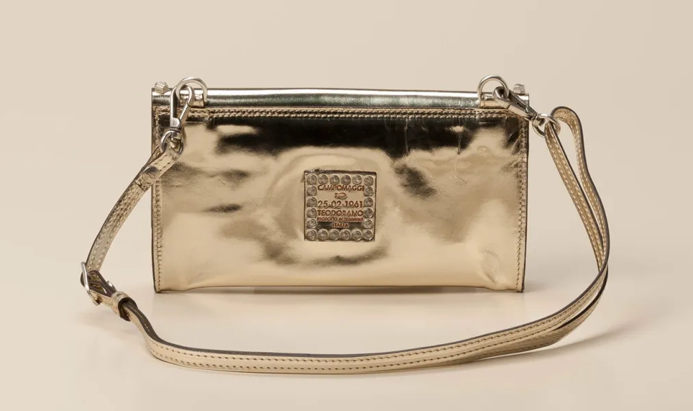 Campomaggi präsentiert eine elegante Damen-Clutch, die durch ihr glänzendes Metallic-Finish begeistert.