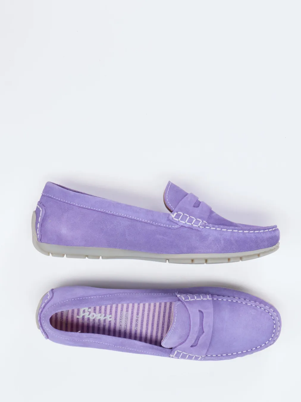 Pastell trifft Komfort.Sioux präsentiert einen Damen-Loafer der Linie Carmona. Das Modell kombiniert weiches, samtig angeschliffenes Veloursleder in trendigem Lavendelton mit einer klassischen, flachen Silhouette und Mokassin-Naht. Die helle Kontraststeppung sowie ein gestreiftes Innenfutter setzen dezente Designakzente. Ein herausnehmbares, weich gepolstertes Fußbett sowie eine honigfarbene Gummisohle mit Flexrillen sorgen für angenehmen Tragekomfort – ideal für entspannte Freizeit-Looks oder den wohnlichen Homewear-Stil. Ein Alltagsschuh mit modischem Soft-Classics-Appeal und typischer Sioux-Verlässlichkeit.
