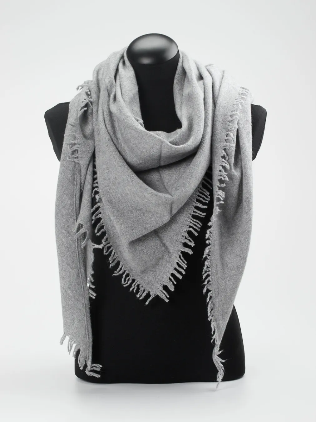 Weich, großzügig geschnitten und stilvoll: Dieses hellgraue Dreiecktuch von Blui bringt minimalistischen Charme und modernen Layering-Komfort in Einklang.