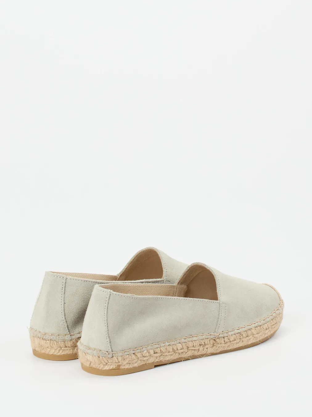 Der Espadrille im klassischen Schlupfdesign greift mit mintgrünem Veloursleder samtig-matte Materialakzente auf, ergänzt durch eine umnähte Zwischensohle aus grob strukturierter Jute. Die flache, rund zulaufende Silhouette harmoniert mit der natürlichen Farbgebung und wird durch eine strukturierte Zehenpartie aus gröberem Textil ergänzt. Die schützende Gummisohle mit leichtem Profil unterstreicht den Freizeitfaktor, während die unaufgeregte Optik in „Natural Tones“ mühelos zu Leinenhosen oder Sommerkleidern passt.