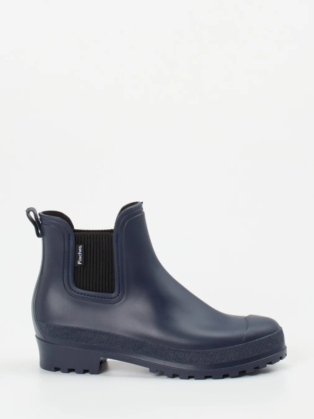 Stilvoll durch nasse Tage.Fischer präsentiert mit dieser Gummistiefelette eine wetterfeste Lösung im Chelsea-Stil. Ideal für feuchte Straßen und urbane Spaziergänge: Der marineblaue Synthetik wirkt durch das matte Finish modern und unaufdringlich. Die elastischen Einsätze und die hintere Zuglasche erleichtern das An- und Ausziehen, während die profilierte Gummisohle rutschfesten Halt bietet. Dank textiler Fütterung bleiben die Füße angenehm warm. Das knöchelhohe, rund geformte Modell greift die Trends „Quiet Outdoor“ und „Functional Footwear“ stilsicher auf. Perfekt kombinierbar mit Regenmantel und urbaner Outdoorwear. Robuster Komfort im minimalistischen Design mit funktionalem Anspruch von Fischer.