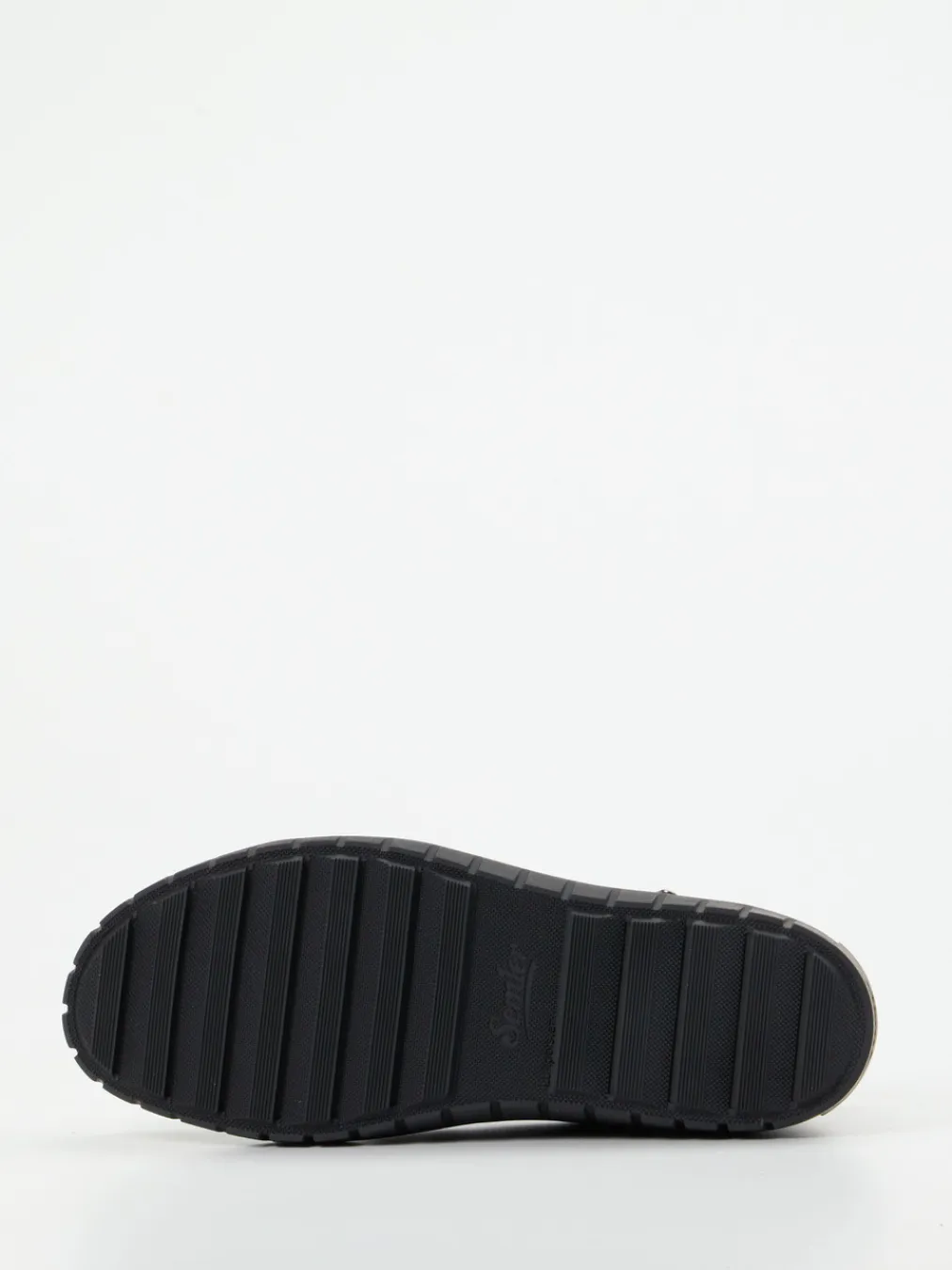 Minimalistisch durchdacht für jeden Tag.Die Marke Semler präsentiert mit dieser Schnürstiefelette einen hochwertigen High-Top-Sneaker in bequemer Weite H. Gefertigt aus butterweichem, mattem Kalbleder bietet der knöchelhohe Schuh einen komfortablen Sitz – ergänzt durch eine funktionale Kombination aus tonigen Reißverschlüssen und klassischer Schnürung. Die hochgezogene Gummisohle mit tiefem Profil sorgt für sicheres Gehen im urbanen Alltag. Optisch überzeugt das unisex-Design mit monochromem Schwarz und klarer Linienführung – inspiriert von minimalistischer Streetwear und Quiet Luxury. Ideal kombinierbar zu Lederjacke oder cleanen Business-Looks. Der Look vereint zeitlose Ästhetik mit semlertypischem Komfortanspruch.