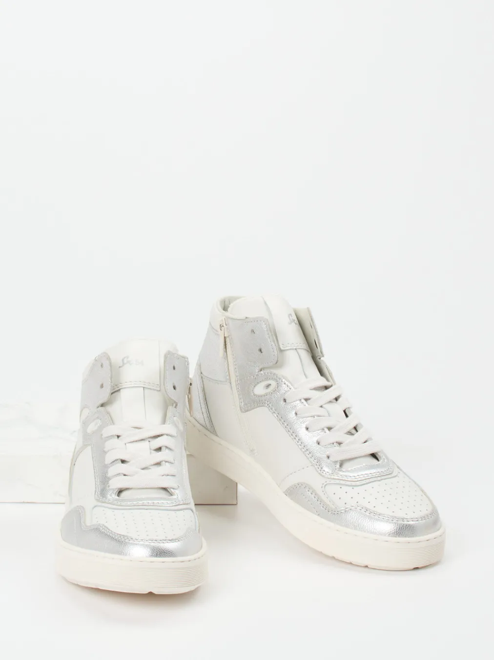 Streetstyle mit Metallic-Finish.Sioux präsentiert mit diesem Damen-High-Top-Sneaker aus der Maite-Kelly-Kollektion ein echtes Trendstück. Ob Citybummel oder Night-Out – dieser Sneaker begleitet trendbewusste Styles mit silbernem Metallicleder, Offwhite-Glattleder und sportlicher Retro-Silhouette. Die Kombination aus Lammnappa und Metallic-Einsätzen sorgt für einen glänzenden Auftritt, während Ton-in-Ton-Nähte und seitlicher Reißverschluss dezente Akzente setzen. Das Frottee-Innenfutter und das gepolsterte, austauschbare Lederfußbett garantieren Tragekomfort. Inspiriert vom Y2K-Trend, passt das Modell zu lässigen Blazern oder silbernen Accessoires. Sioux vereint Komfort, Design und modischen Zeitgeist mit hoher Handwerkskunst.