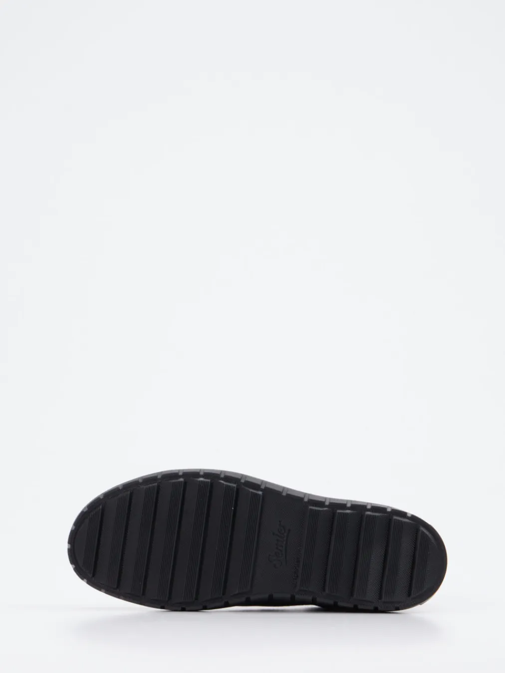 Funktion trifft Streetwear-Design.Semler präsentiert einen sportiv-eleganten High-Top-Sneaker für Damen. Ideal bei kühleren Temperaturen in Stadt und Alltag: Der knöchelhohe Sneaker aus butterweichem, matt gearbeitetem Veloursleder in Anthrazit bietet dank H-Weite und gepolstertem Schaft hervorragenden Komfort. Zwei seitliche Reißverschlüsse neben der klassischen Schnürung vereinfachen den Einstieg. Die hochgezogene, profilierte Gummisohle vereint Stabilität und Street-Style-Charakter. Dezente Ton-in-Ton-Nähte und ein geprägtes Markenlogo an der Ferse runden das minimalistische Design ab. Ein zuverlässiger Begleiter für entspannte Casual-Looks mit hochwertiger Verarbeitung aus dem Hause Semler.