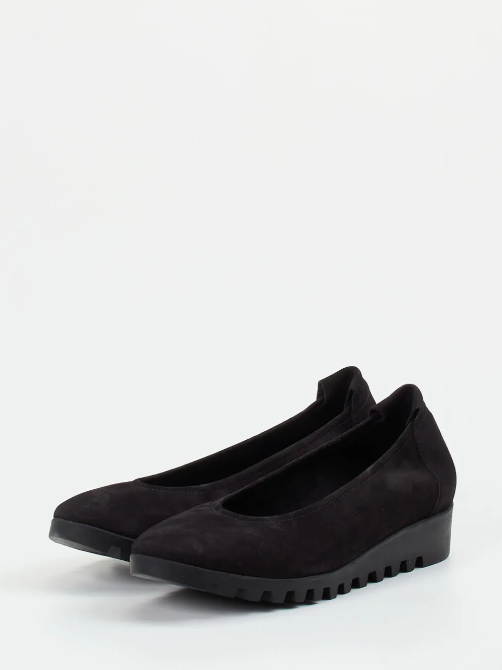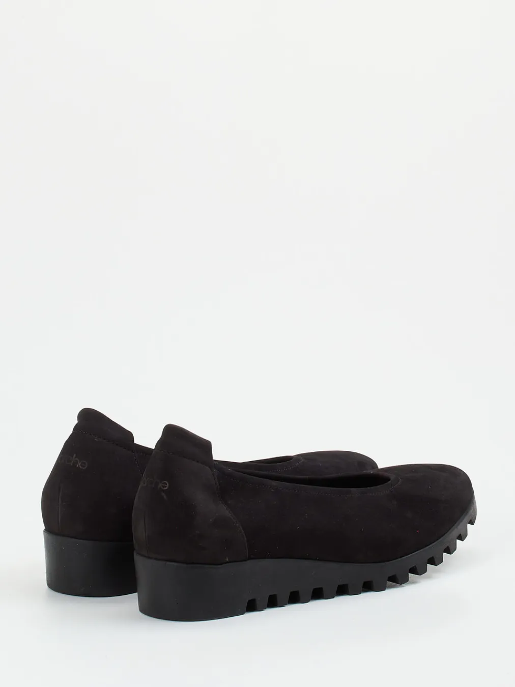 Arche interpretiert den Damen-Slipper mit diesen Keilballerinas in einem edel-matten Tiefschwarz neu.