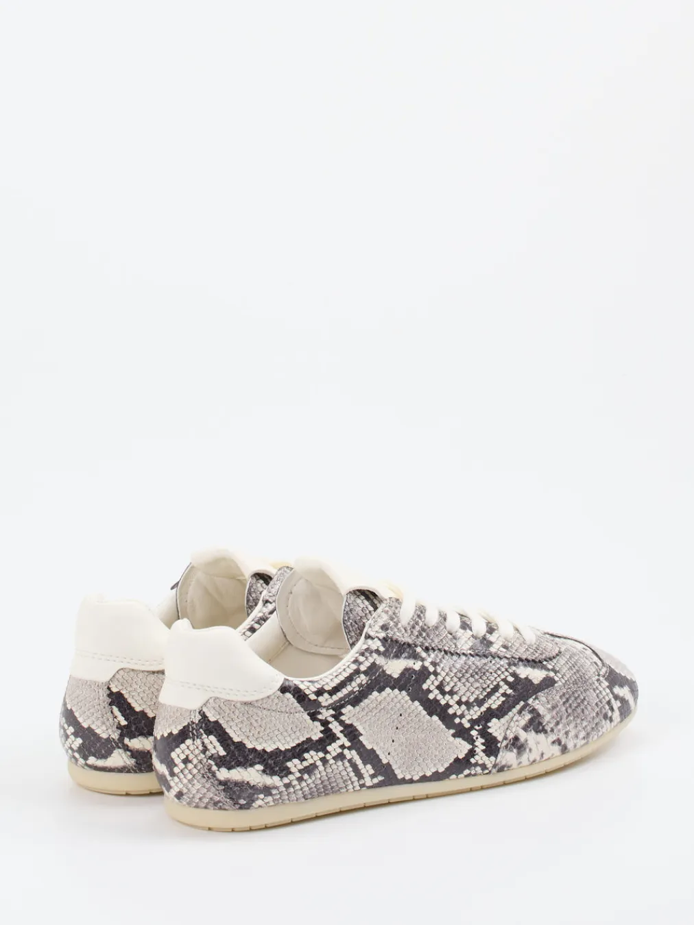 Dieser Sneaker kombiniert glänzendes Lackleder mit auffälliger Python-Prägung und flacher Silhouette – ideal für moderne Street-Looks mit dezentem Luxus.