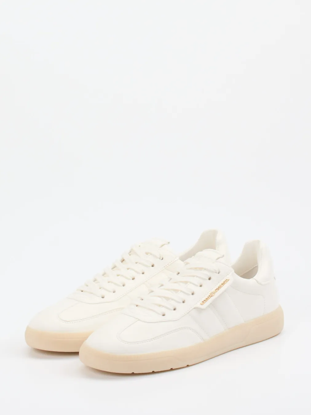 Dieser Sneaker kombiniert butterweiches Lammleder mit puristischer Retro-Ästhetik und einer goldenen Markenplakette – ein stilvoller Begleiter für Alltag und Office.