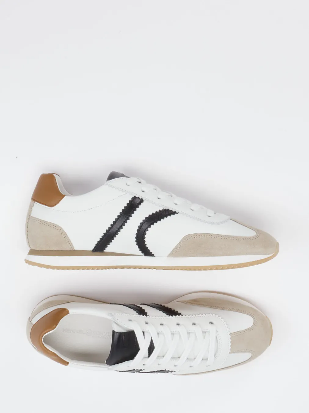 Vintage-Charme trifft auf modernen Streetstyle. Kennel & Schmenger präsentiert einen Damen-Sneaker im Retro Runner-Stil für sportlich-inspirierte Looks. Ob in der City oder beim Spaziergang im Park – der Materialmix aus Veloursleder und Glattleder verbindet Komfort mit urbaner Ästhetik. Die weiße Grundfarbe wird durch beige und cognacbraune Akzente sowie zickzackförmige Seitenstreifen modisch aufgewertet. Zunge mit Branding und eine kontrastierende Fersenpartie unterstreichen das trendige Design. Mit flacher, leichter Silhouette und praktischer Schnürung passt der Sneaker perfekt zu Casual-Wear. Der Streetwear-Look harmoniert besonders gut mit Retro-Jacken oder sportlichen Taschen. Ein hochwertig verarbeiteter Alltagsschuh mit modischem Anspruch und Vintage-Relevanz.