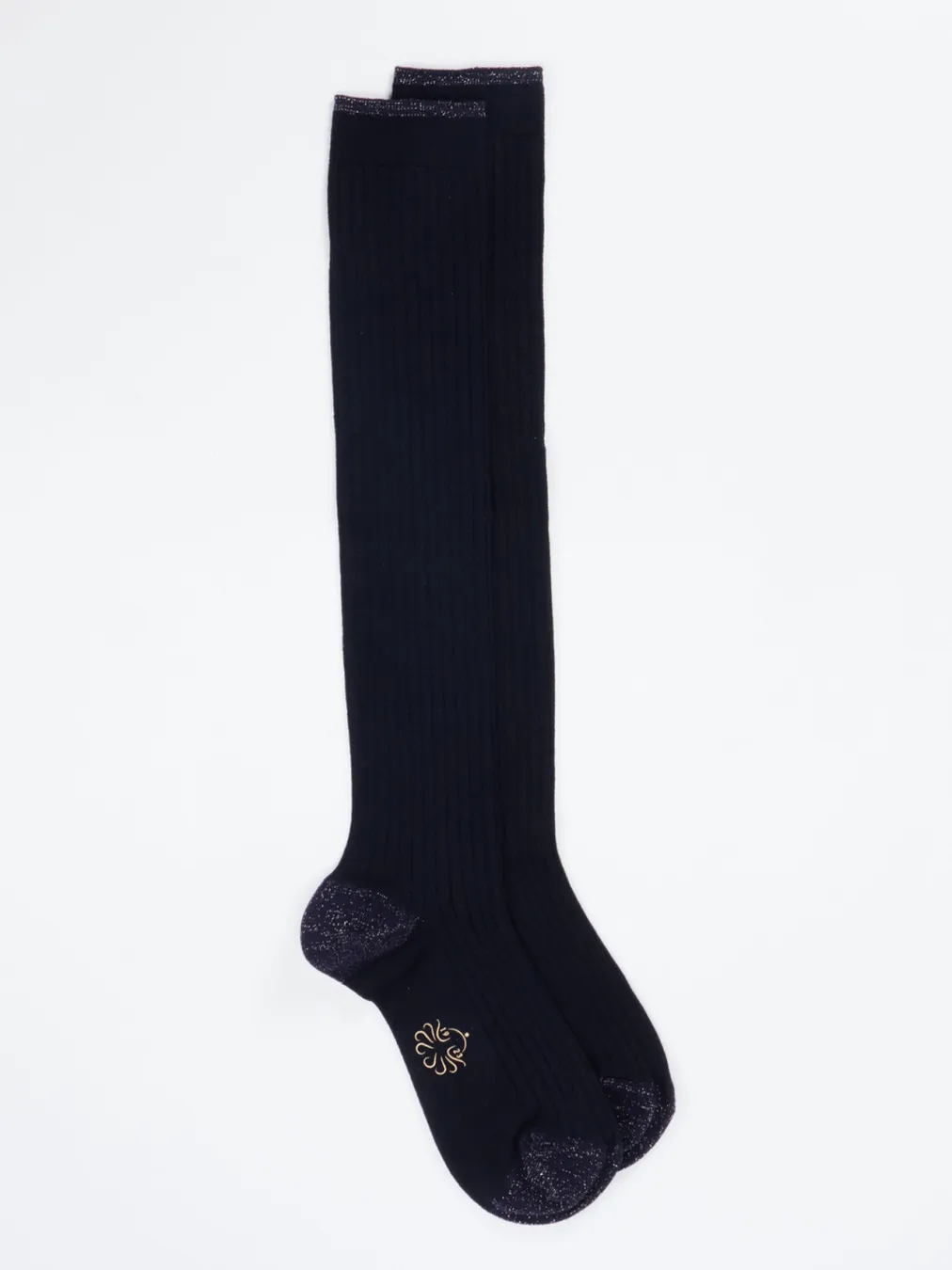 Sehr schick und kuschelig weich sind diese handgefertigten Kniestrümpfe aus dem Hause Alto Milano. Der Schurwollmix zeigt sich in einem klassischen Rippenstrick in Nachtblau. Dezent platzierte, funkelnde Lurexfäden an Fußspitze, Ferse und Bündchen setzen einen tollen, modischen Akzent. – Material: 80% Schurwolle, 10% Baumwolle, 6% Polyamid, 2% Polyester, 2% Elastan – Pflegehinweis: Handwäsche bis max. 40°C