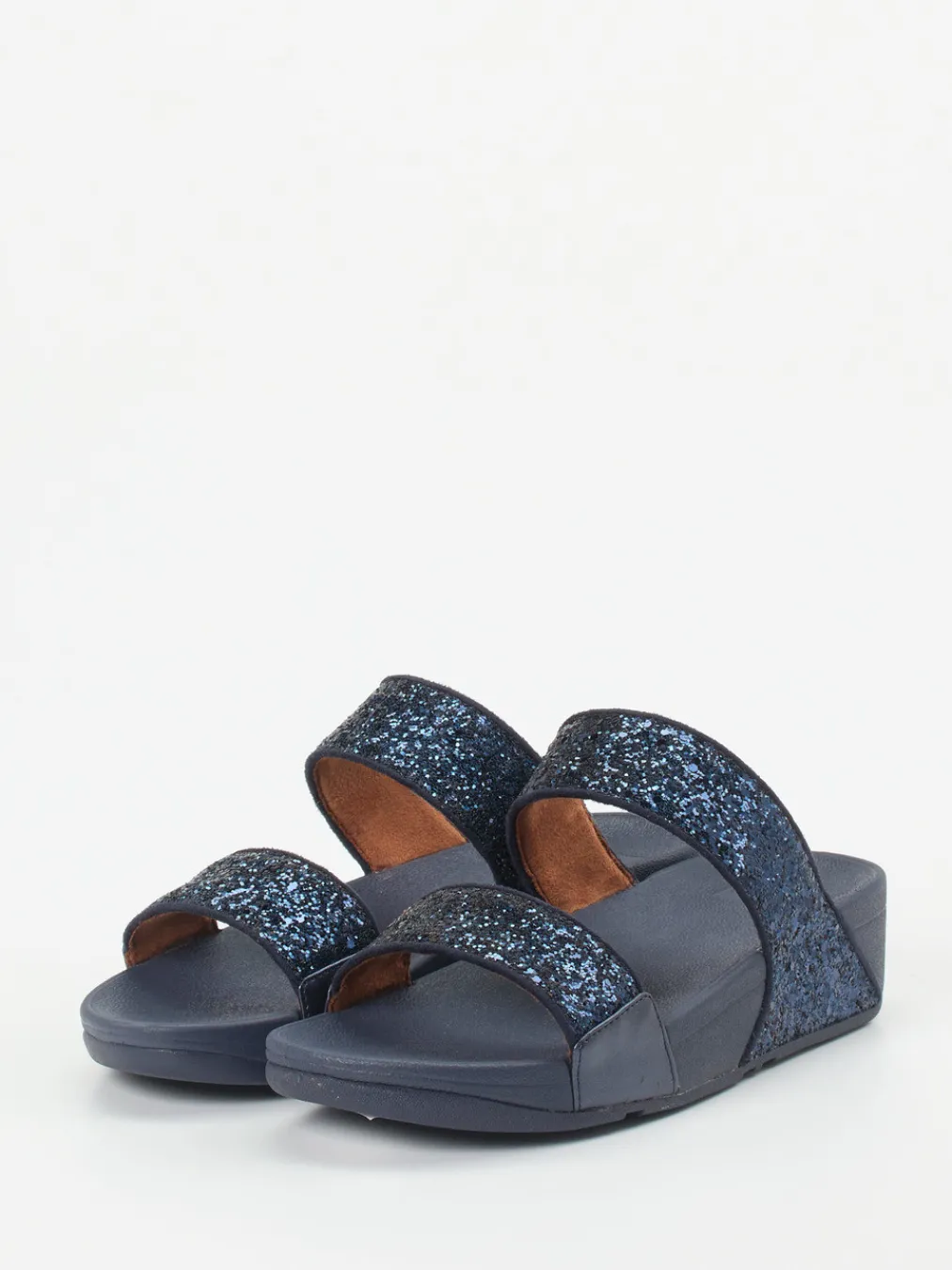 Als Komfort-Slide von FitFlop überzeugt dieses Damenmodell durch ergonomisches Design und stilbewusste Akzente. Die bequeme Pantolette bietet durch ihre gepolsterte Innensohle und die ergonomisch geformte, rutschhemmende Gummilaufsohle ein angenehmes Tragegefühl – ob in der Stadt oder bei sommerlichen Anlässen. Der weiche Textilriemen funkelt dank Ton-in-Ton Glitzerbesatz in elegantem Dunkelblau und wird innen von hautfreundlicher Microfaser unterstützt. Die offen gehaltene Form ergänzt das entspannte Design, während der keilförmige Boden zusätzliche Trittsicherheit vermittelt. Ein stilvoller Begleiter im Zeichen des Glitter Revivals. FitFlop kombiniert trendige Optik mit funktionaler Wohlfühl-Performance.