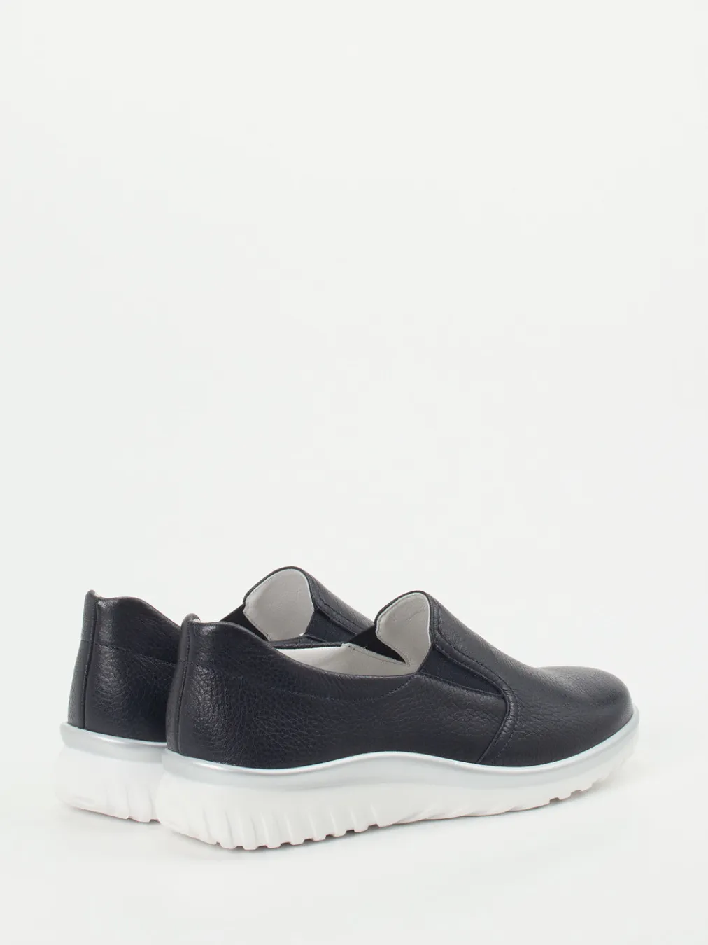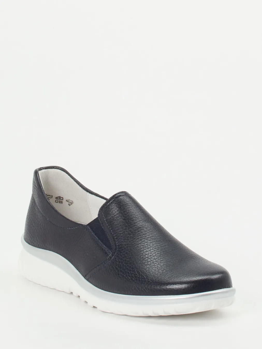 Ideal für entspannte Tage im Alltag bietet dieser Slipper höchsten Tragekomfort durch geschmeidiges, genarbtes Hirschleder in tiefem Blau und weich gepolsterte Details. Elasteinsätze erleichtern den Einstieg und sorgen für passgenauen Halt. Die weiße Keil-Gummisohle mit silbernem Kontraststreifen unterstreicht den minimalistischen Look und bietet rutschhemmende Sicherheit. Durch das herausnehmbare Fußbett ist er auch für Einlagen geeignet, perfekt für modeaffine Komfortliebhaberinnen.
