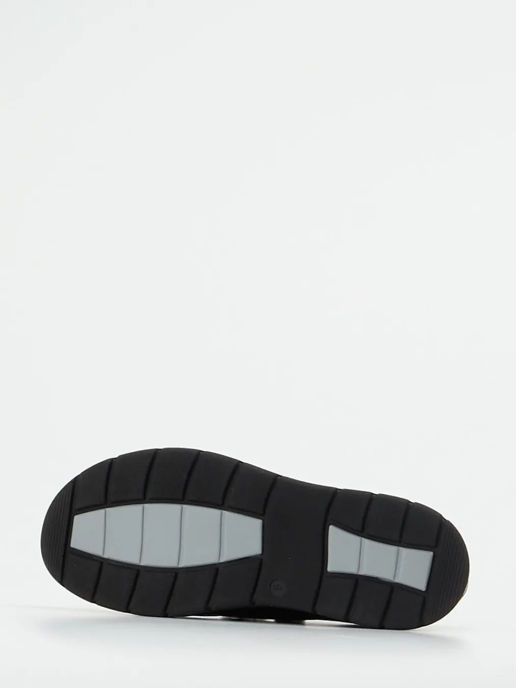 Der Sneaker von Stuppy verbindet glänzendes Lackleder mit strukturiertem Stretchmaterial – modisch und komfortabel zugleich. Ein funktionaler Reißverschluss erleichtert den Einstieg.