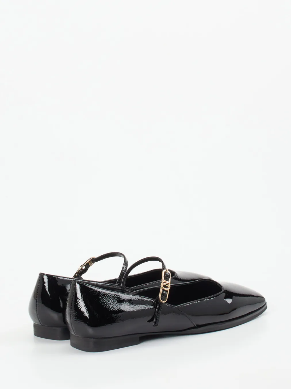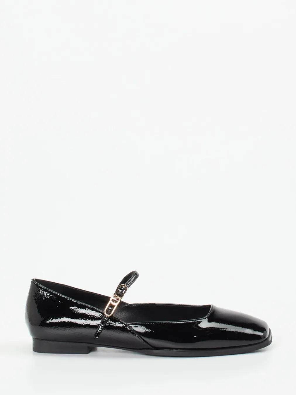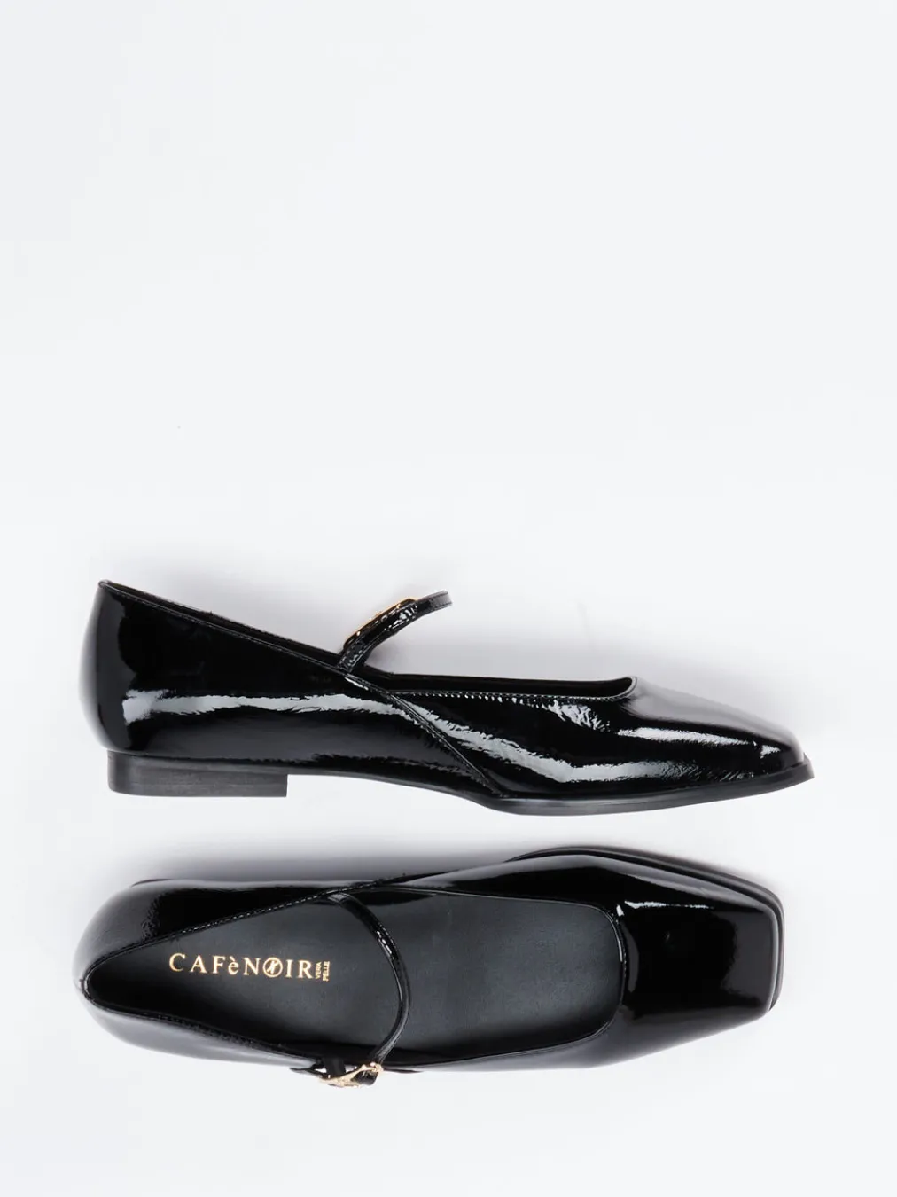CAFèNOIR interpretiert klassische Mary Jane Ballerinas neu – in einer schwarzen Lackledervariante mit femininer Note.
