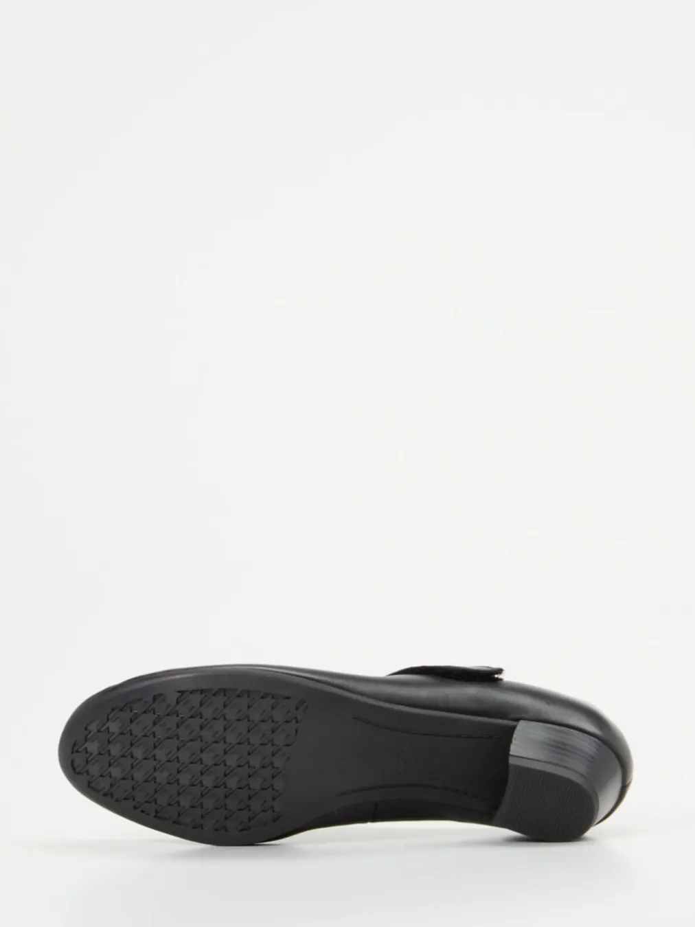 Der feminine Spangenschuh aus schwarzem Kalbleder kombiniert dezente Retro-Ästhetik mit spürbarem Komfort – ideal für Arbeitstage mit Stilanspruch.