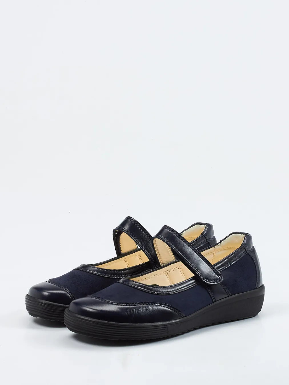 Christian Dietz präsentiert mit diesen Mary Janes ein alltagstaugliches Komfortmodell für Damen. Gefertigt aus Stretchmaterial mit Velourscharakter in Kombination mit dunkelblauem Kalbleder verbindet es höchsten Gehkomfort mit unaufdringlicher Optik.