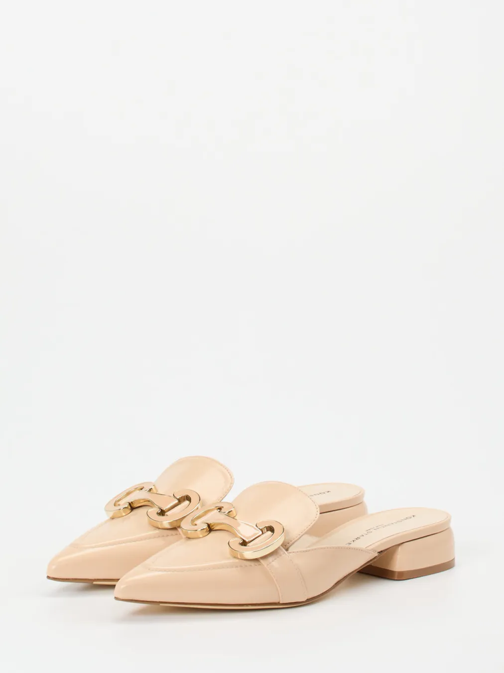 Minimalistisch mit Statement-Charakter.Die Marke Konstantin Starke steht bei diesen Damen-Mules für elegantes Understatement mit hochwertiger Verarbeitung. Ob im Business-Meeting oder beim stilvollen Stadtbummel – das beigefarbene Lackleder mit glänzender Oberfläche sorgt für einen souveränen Auftritt. Die spitz zulaufende Form und der dezente Blockabsatz unterstreichen den femininen Minimal-Chic. Auffällig: die goldfarbene Zierspange, die als edles Finish ins Auge fällt. Die Ledersohle und das Ziegenlederfutter bieten gehobenen Komfort für den Tag. Besonders harmonisch in Kombination mit hellen Lederaccessoires oder fließenden Materialien. Reduziert, aber wirkungsvoll – zeitlose Eleganz von Konstantin Starke.