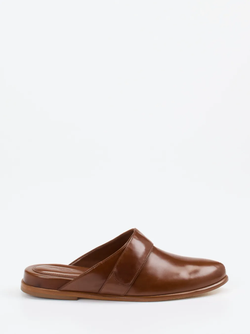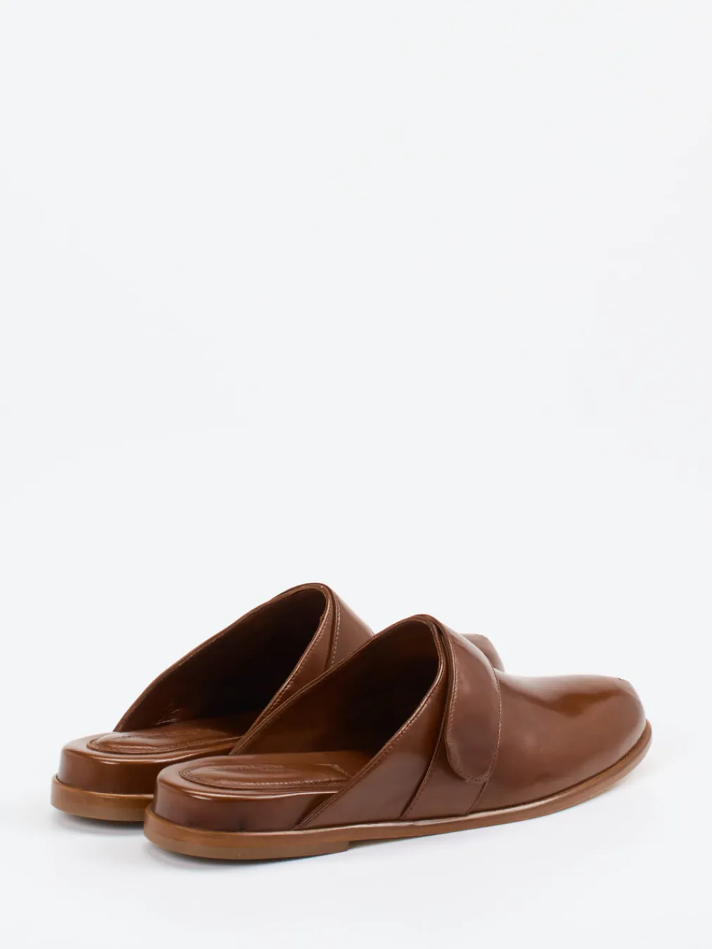 Eleganz für jeden Tag.Konstantin Starke bringt mit dieser Pantolette eine zeitlose Mules-Variante für Damen in die Kollektion. Ideal für reduzierte Sommer-Outfits oder entspannte Büro-Looks bietet dieses Modell aus cognacbraunem, glänzendem Lammleder Komfort und Understatement. Die cleane Silhouette mit offener Ferse, das butterweiche Lederfutter sowie die gepolsterte Ledersohle sorgen für angenehmes Tragegefühl. Ton-in-Ton-Nähte und ein seitliches Overlay unterstreichen den minimalistisch-eleganten Anspruch. Der Look greift die Trends „Quiet Luxury“ und „Luxe Comfort“ auf und passt zu monochromen Styles, feinem Strick oder Lederaccessoires in warmen Tönen. Italienische Handwerkskunst trifft moderne Form – für stilvolle Leichtigkeit mit Substanz.