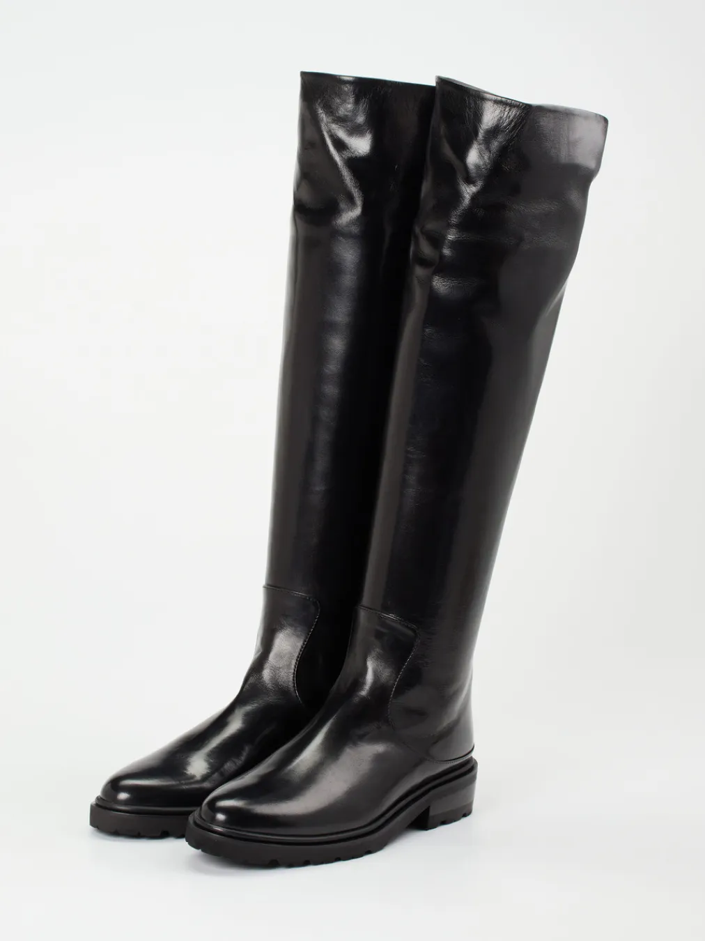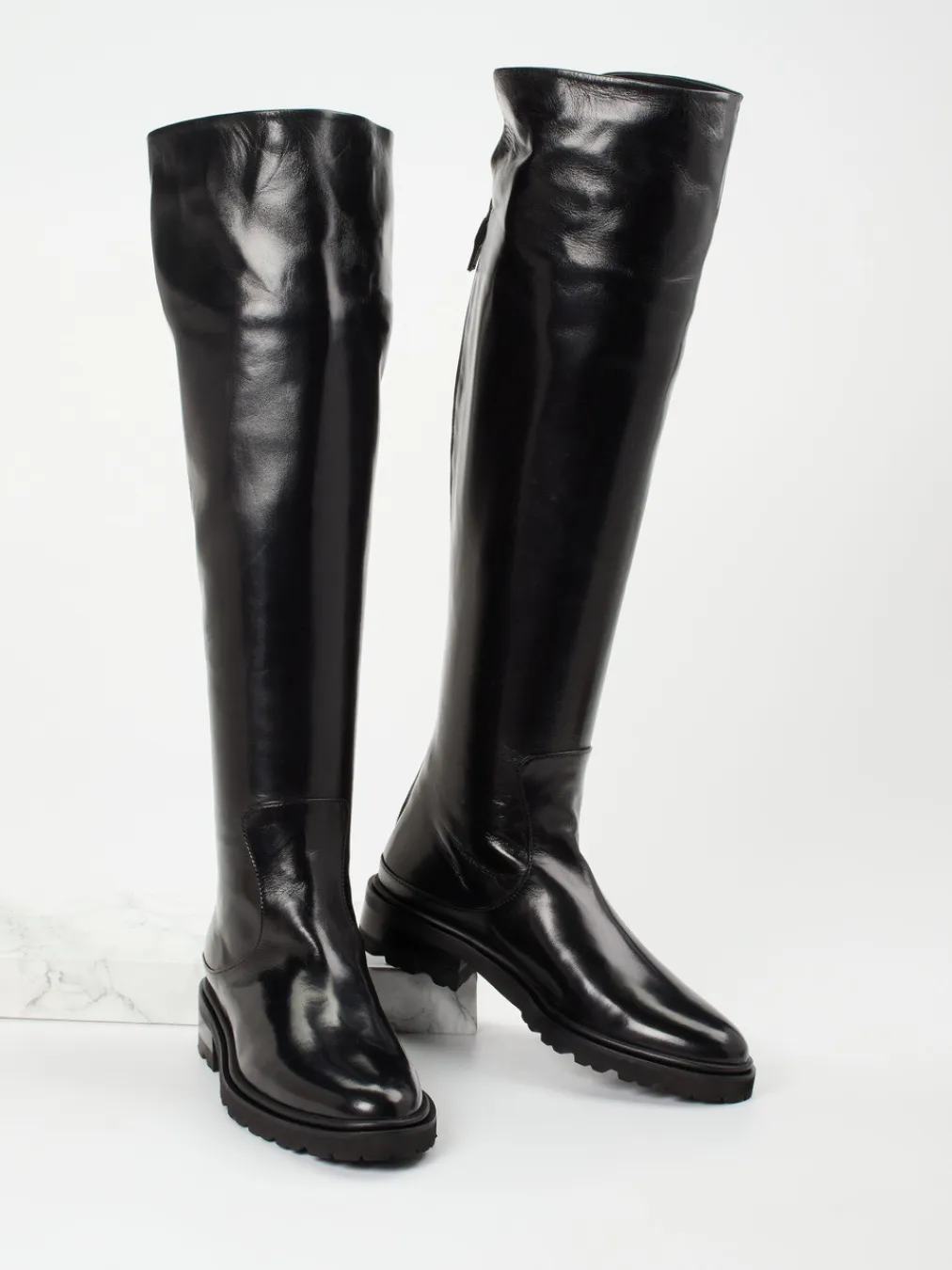 Dieser Overknee-Stiefel vereint hochwertiges Lammleder mit einem minimalistischen Design – ideal für trendbewusste Looks mit urbaner Eleganz.