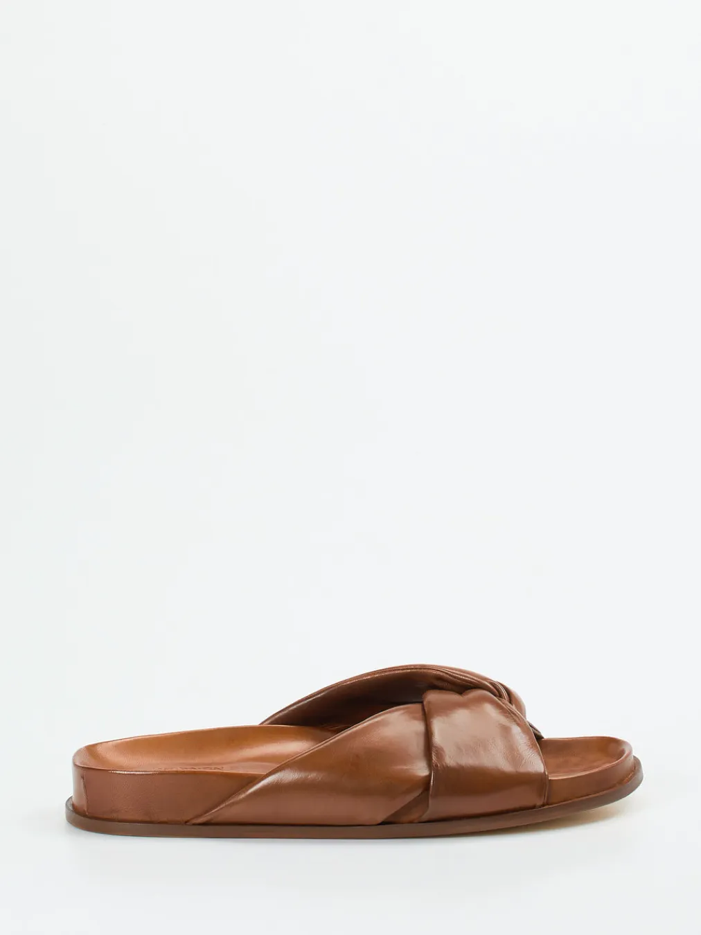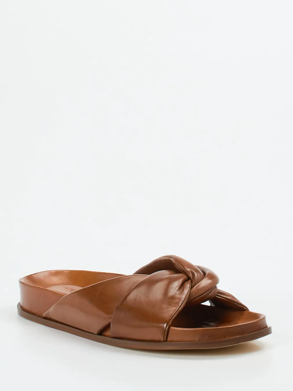 Diese luxuriös verarbeitete Pantolette überzeugt mit softem Lammleder, glänzender Oberfläche und modischem Knotendesign – ideal für stilbewusste Minimalistinnen.