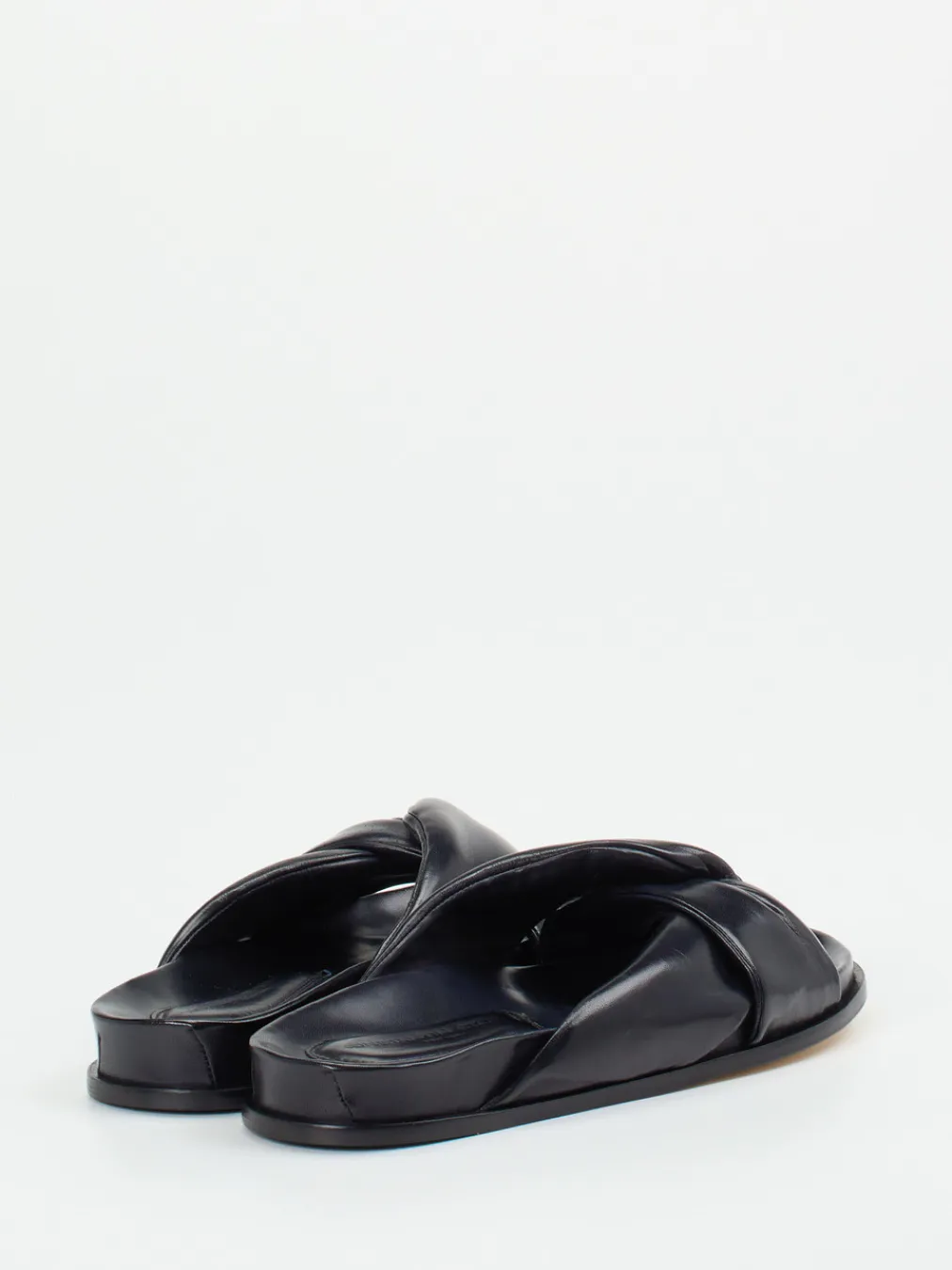 Diese hochwertig gearbeiteten Slides vereinen gepolsterten Komfort mit puristischem Design und sind ideal für stilbewusste Sommerlooks.