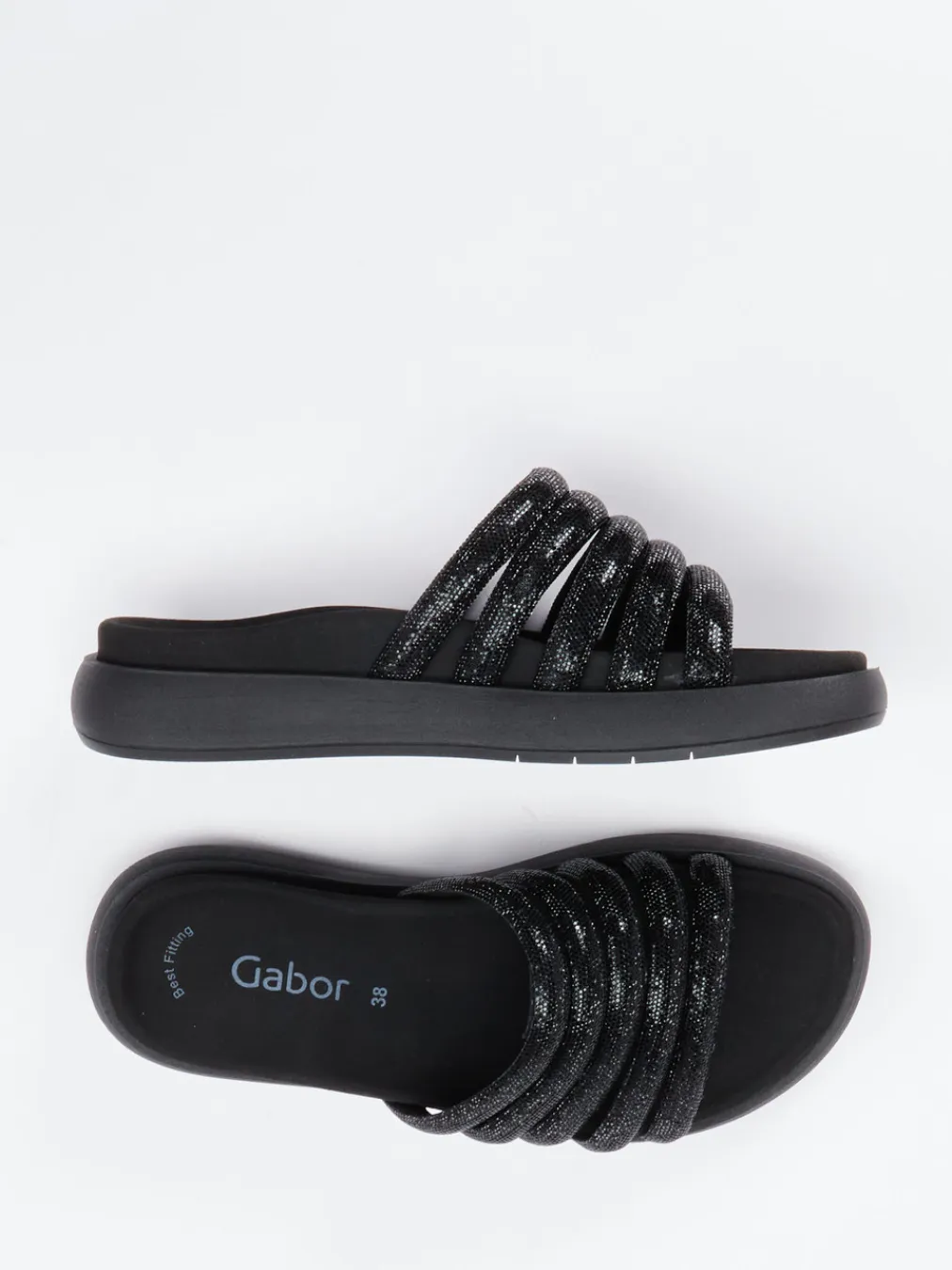 Diese Gabor-Slide verbindet glitzernde Raffinesse mit hohem Tragekomfort – ideal für Modefans mit Sinn für dezente Extravaganz.