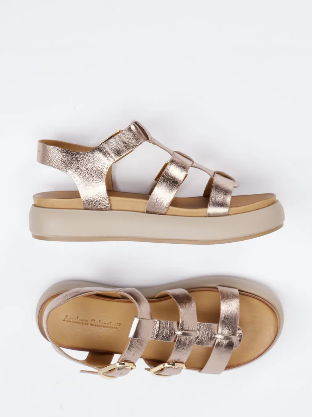 Ein glänzendes Metallic-Leder in angesagtem Roségold sorgt für den besonderen Akzent an warmen Tagen. Das offene Design mit breiten Riemen, individuell verstellbaren Metallschnallen und gepolsterter Innensohle überzeugt beim Stadtbummel wie im Urlaub. Die strukturierte Gummisohle bietet sicheren Halt, während die dezenten Gold-Akzente stilsicher zum Minimalismus-Trend passen. Ideal zu hellen Leinenstoffen und cremefarbenen Accessoires.