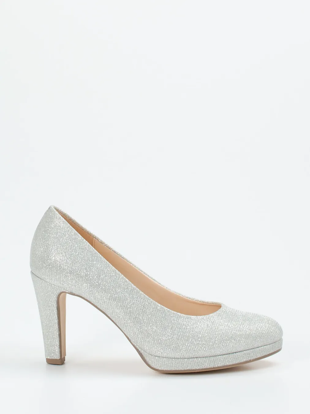 Ob Gala-Abend oder festlicher Empfang – der funkelnde Look erfüllt stilvolle Ansprüche. Aus silberfarbenem Metallicleder gefertigt und mit einer glitzernden, glänzenden Oberfläche versehen, prägen ein bezogener Blockabsatz und die gerundete Plateauform das Design. Der Schlupfschuh mit beigem Kalblederfutter bietet angenehmen Komfort, während die profilierte Kunststoffsohle sicheren Halt liefert. Design-Elemente wie das Ton-in-Ton-Finish unterstreichen den modischen Einfluss von Minimalismus und Vintage 90s.