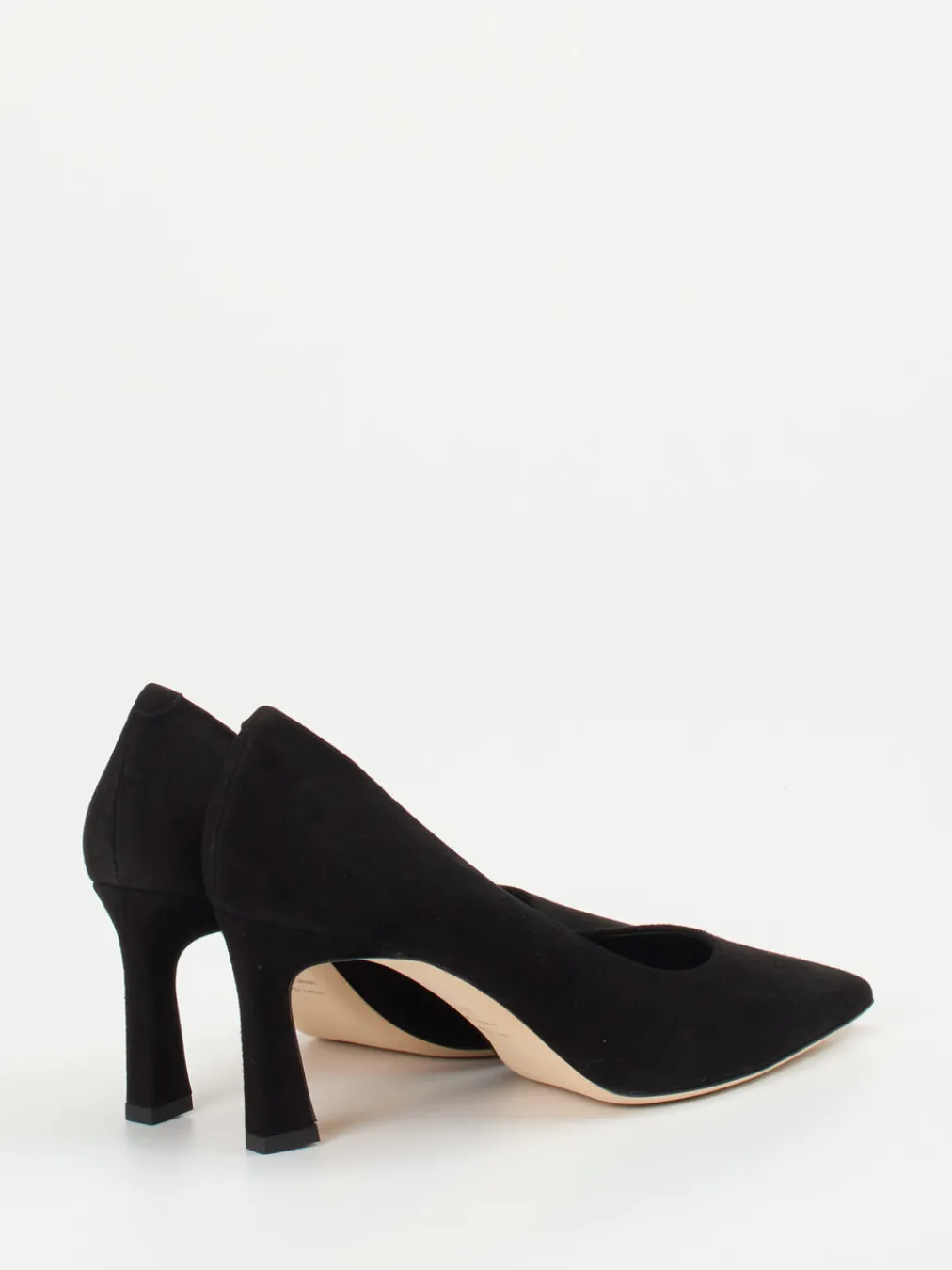 Fein gearbeitetes Veloursleder mit matt strukturierter Oberfläche unterstreicht den hochwertigen Look. Der bezogene Absatz mit 7 cm Laufhöhe sorgt für eine aufrechte Haltung – ideal für Business-Szenarien oder formelle Anlässe. Das designbetonte Ton-in-Ton-Konzept passt hervorragend zu minimalistisch inspirierten Outfits und spiegelt den „Quiet Luxury“-Trend wider. Eine gepolsterte Innensohle verspricht angenehmen Komfort.