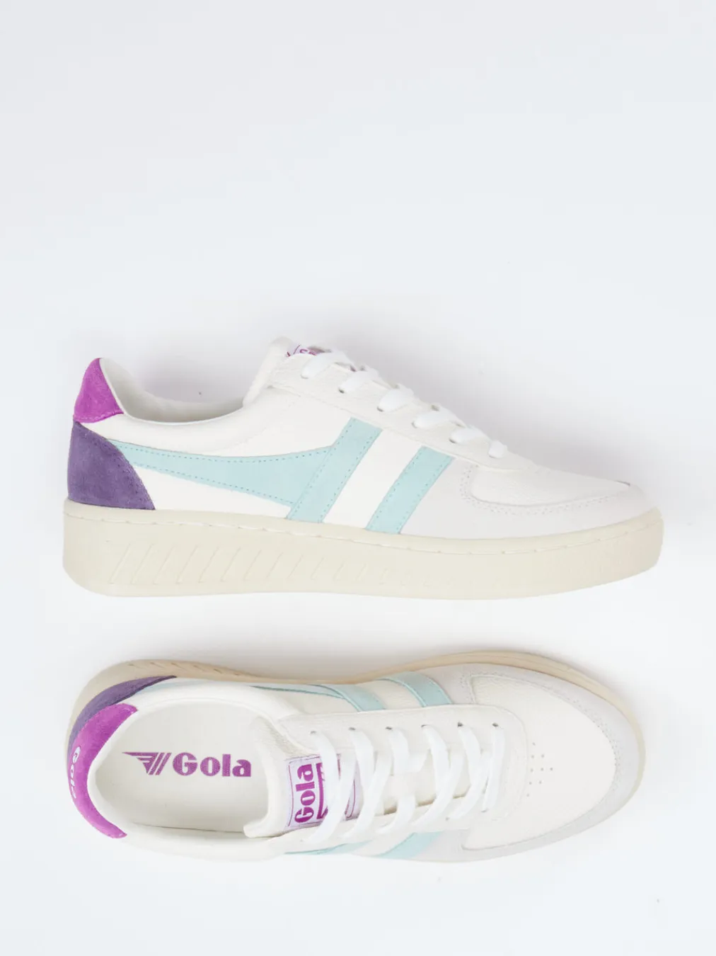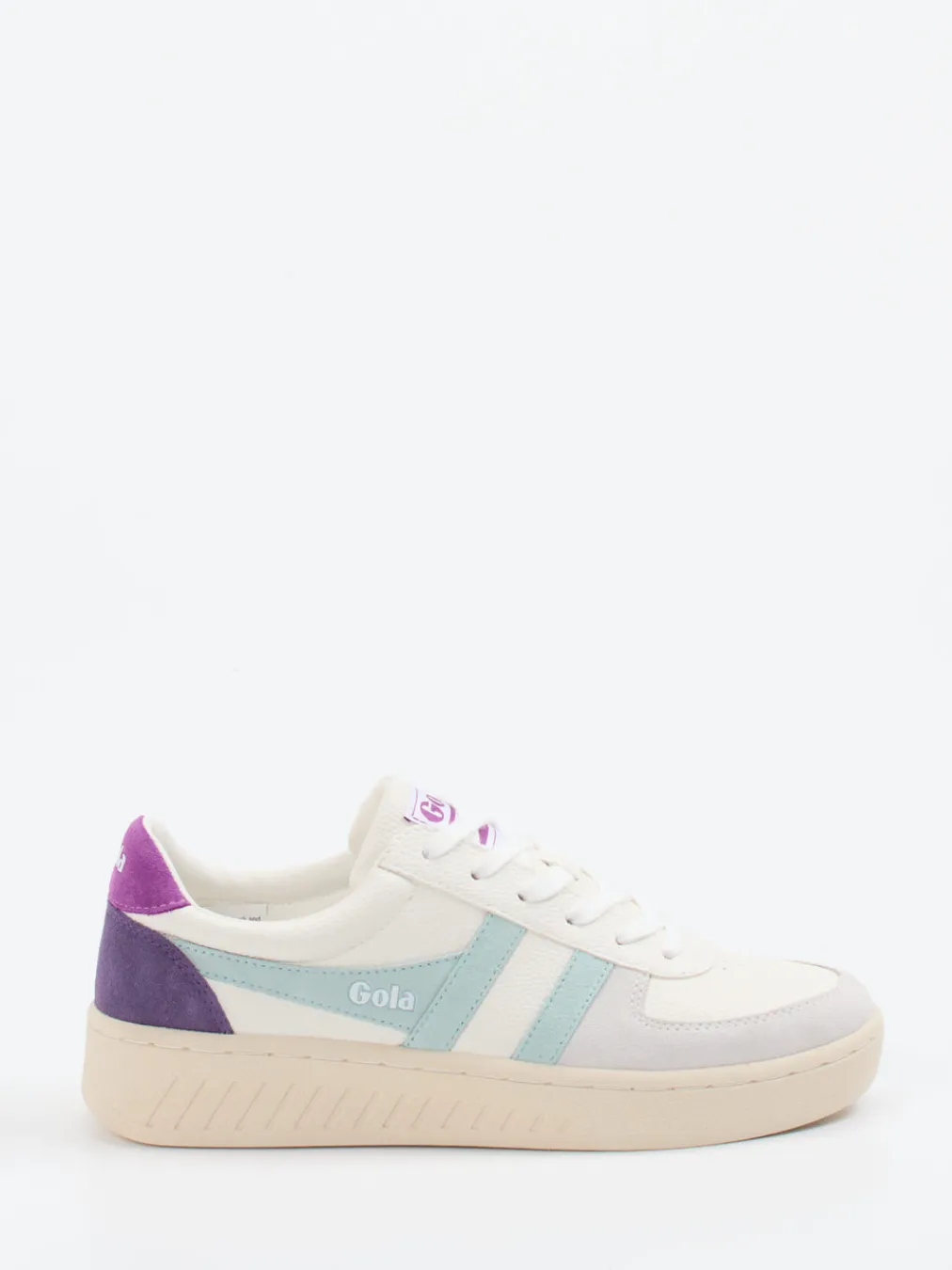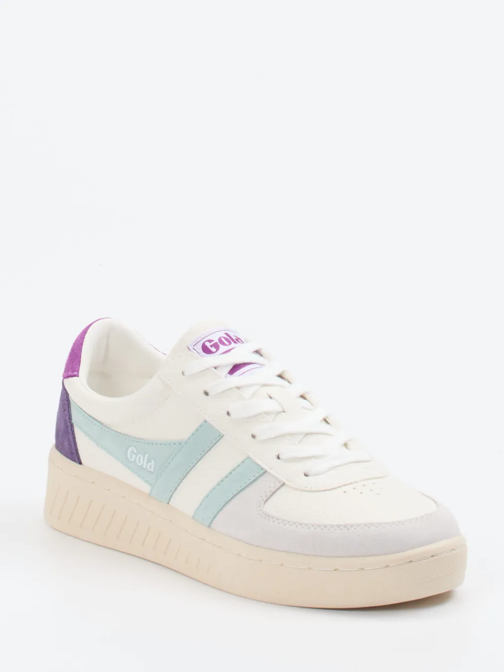 Pastell trifft Retro-Flair.Gola präsentiert diesen Damen-Sneaker im angesagten 90s-Revival-Look. Ideal für entspannte Tage in der Stadt oder auf Reisen bietet dieser retro-inspirierte Sneaker eine bequeme Basis für trendige Freizeit-Outfits. Aus Leder mit samtig angeschliffenem Veloursanteil gefertigt, überzeugt das Modell durch seine matte Optik und die harmonische Farbkombination aus Cremeweiß, Pastellblau und Flieder. Die klassisch niedrige Silhouette mit gepolstertem Einstieg trifft auf eine profilierte Plateausohle mit griffigem Laufgefühl. Ton-in-Ton-Nähte und geprägte Logos setzen dezente Markenstatements. Funktional und modisch – perfekt für trendorientierte Streetstyles im Frühjahr und Sommer. Ein modernes Must-have mit Tradition und Komfort.
