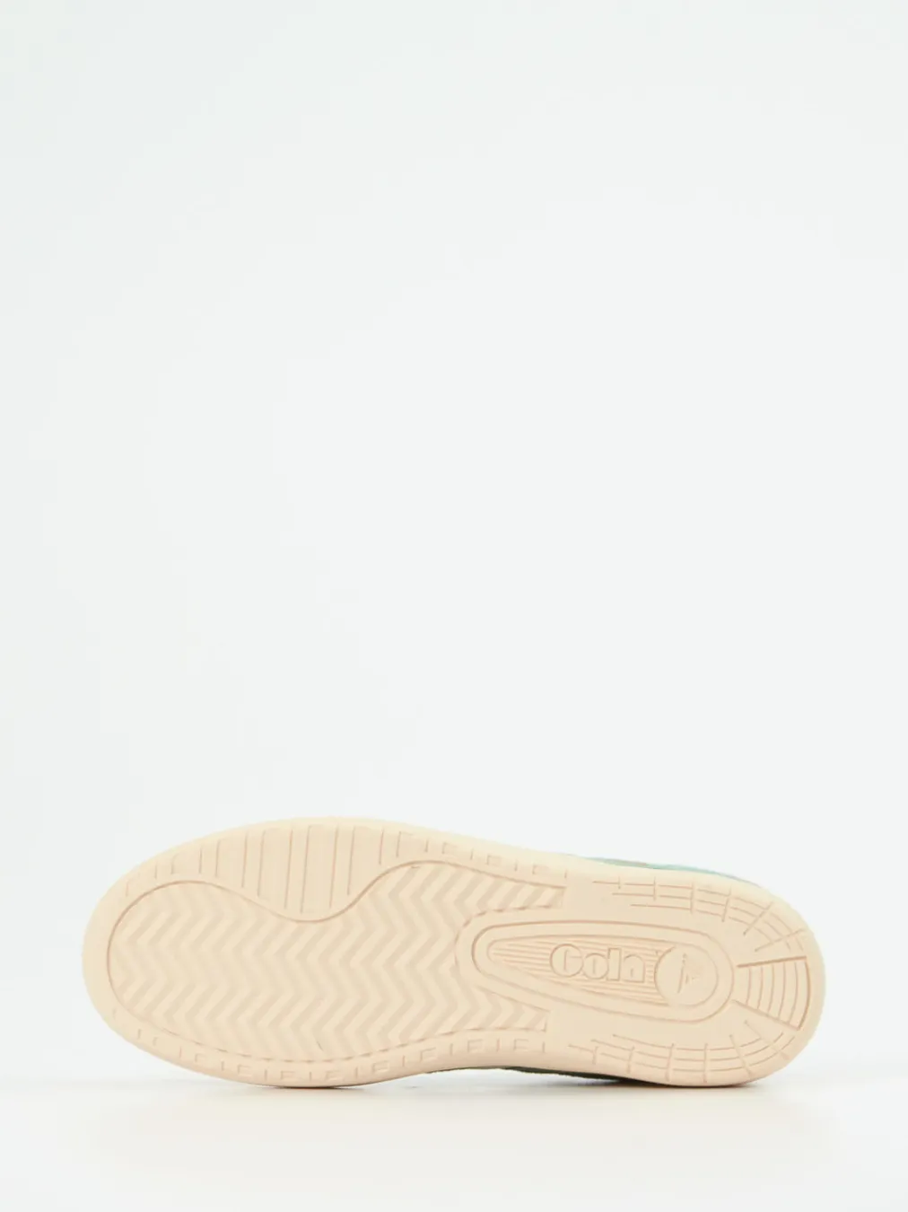 Pastellfarben mit Retro-Charme.Gola interpretiert sportliche Lässigkeit neu: Dieser Sneaker greift die Linienführung klassischer 80s-Tennisschuhe auf und setzt auf Trendfarben der aktuellen Saison. Weißes Leder bildet die Basis, kombiniert mit samtig angeschliffenem Veloursleder in Rosé und Salbeigrün. Der klassische, flache Schnitt wird durch eine robuste Gummisohle ergänzt. Goldene Logodetails auf Zunge und Seiten unterstreichen den Vintage-Look. Die weich gepolsterte Lasche und das austauschbare Fußbett sorgen für Tragekomfort im Alltag. Als Streetwear-Piece oder zur leichten Sommergarderobe – der Stil bleibt entspannt. Ein Sneaker mit Stilbewusstsein und Markencharakter – aus dem Hause Gola.