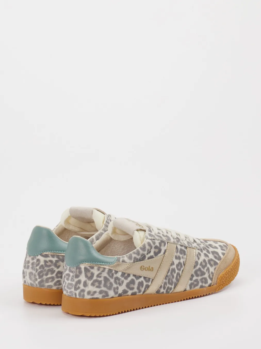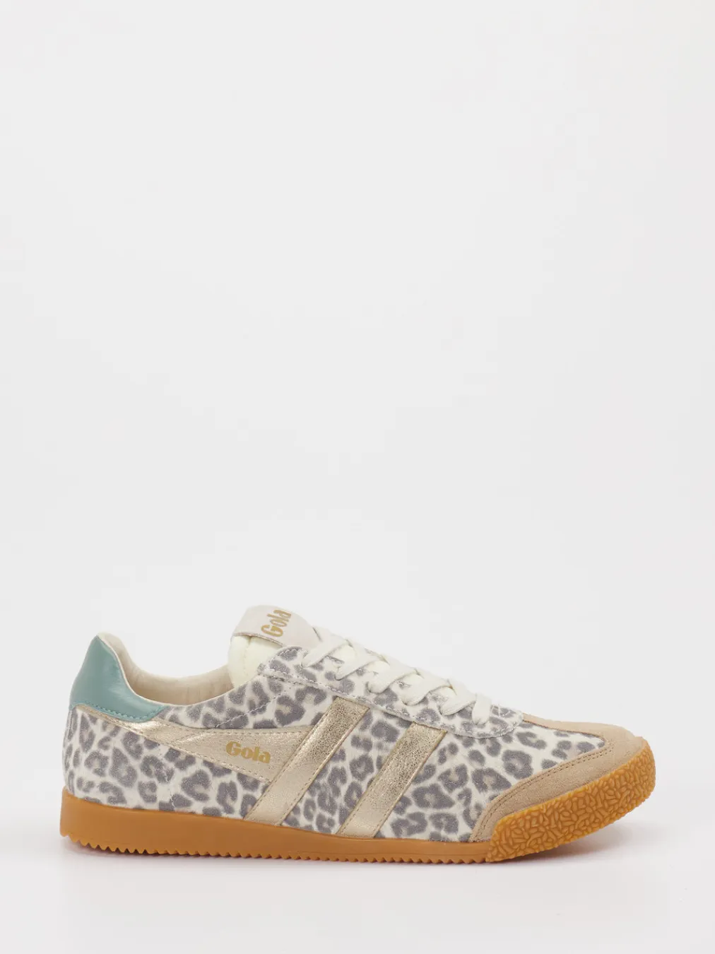 Ein Blickfang mit Vintage-Flair. Gola bietet mit diesem Retro-Sneaker für Damen ein modisches Statement für urbane Styles. Die Kombination aus geprägtem Leder und textilen Einsätzen sorgt für eine angenehm weiche Haptik und spannenden Materialkontrast. In Hellgrau gehalten und mit beigefarbenem Leopardenmuster sowie mintgrünen Akzenten überzeugt das Modell durch seine flach-schlanke Silhouette. Goldfarbene Streifen und ein markantes Logo verstärken den auffälligen Look. Dank Schnürverschluss, verstärkter Ferse und flexibler Gummisohle bietet der Schuh Tragekomfort und Stabilität – ideal für das modische Ausgehen wie auch für den Alltag. Perfekt zu Oversized-Hoodies oder Metallic-Bags kombinierbar. Ein markentypischer Statement-Sneaker mit modischer Präsenz und Streetwear-Attitüde.